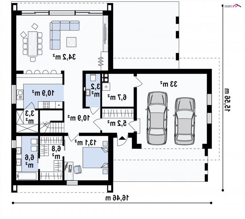 Projekt domu z antresolą, poddaszem użytkowym, spadzistym dachem i dwustanowiskowym garażem. Sprosta oczekiwaniom nawet najbardziej wymagającego inwestora.