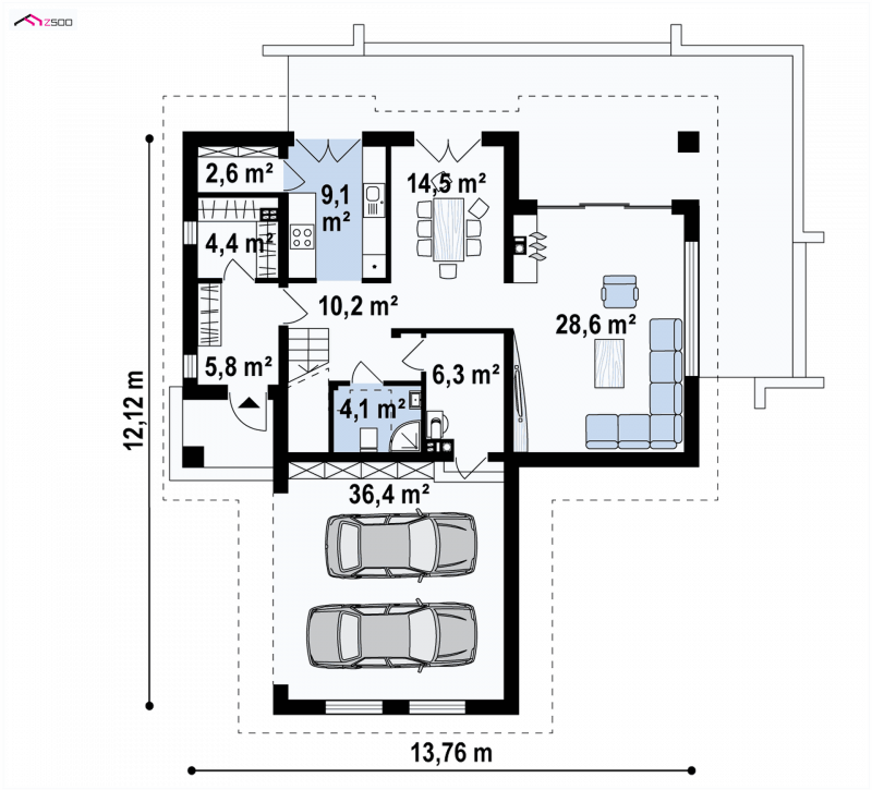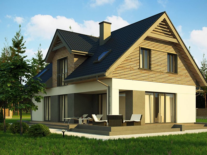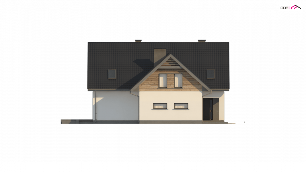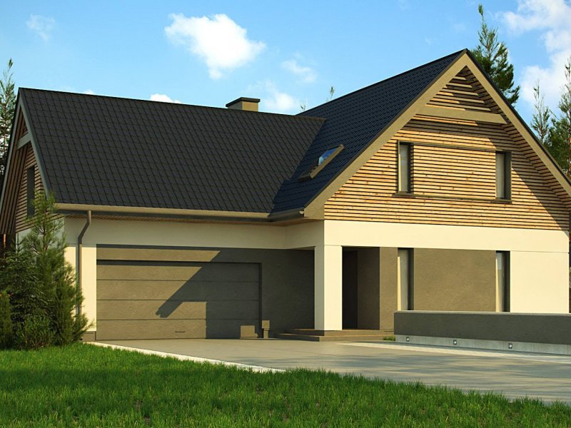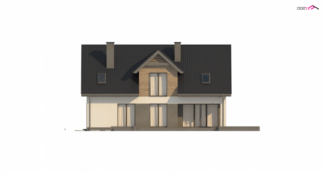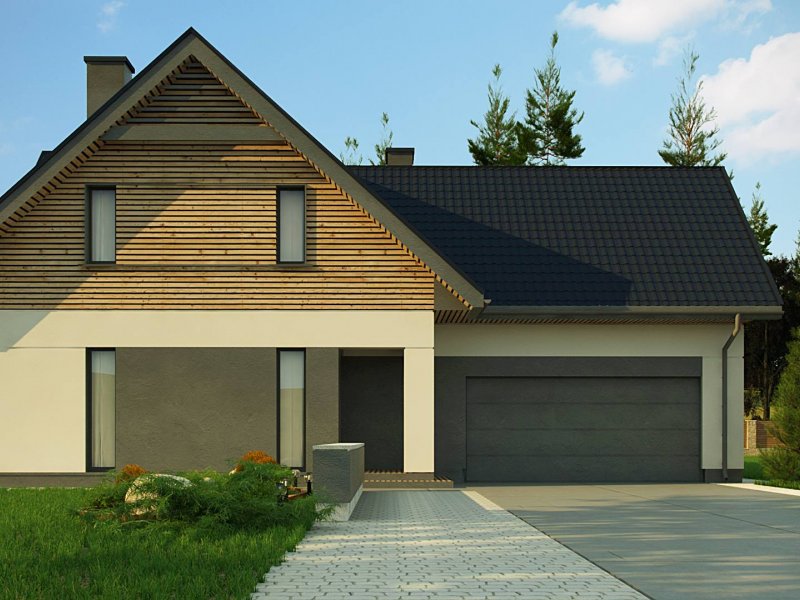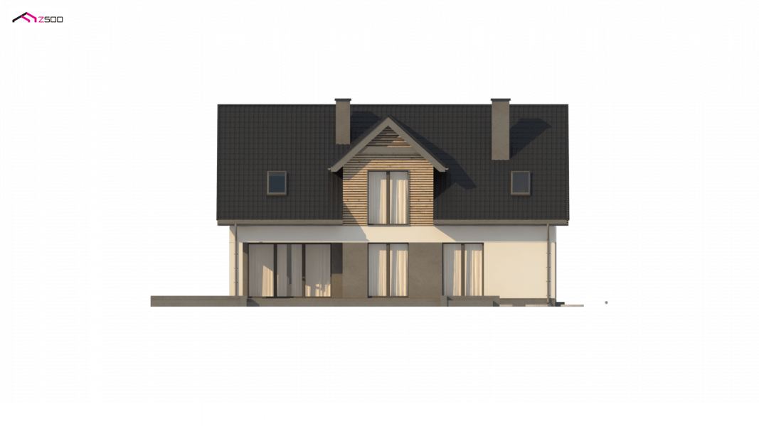 Z359 jest propozycją pięknego domu o tradycyjnej formie, współczesnej stylistycznie, dzięki czemu lekko wpisuje się w polski styl zabudowy. Posiada stromy dach wielospadowy i dwustanowiskowy garaż. Ciekawa forma wykończeniowa elewacji to okładzina drewniana naturalna, bądź tynk imitujący drewno połączona z biało-szarym tynkiem wzbogaconym o boniowania. Całość nadaje budynkowi wrażenia uroku i przytulności.