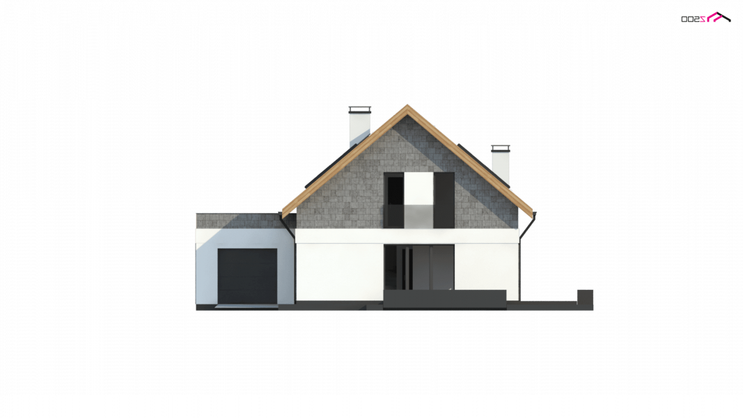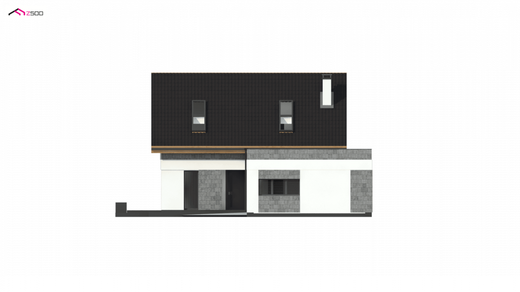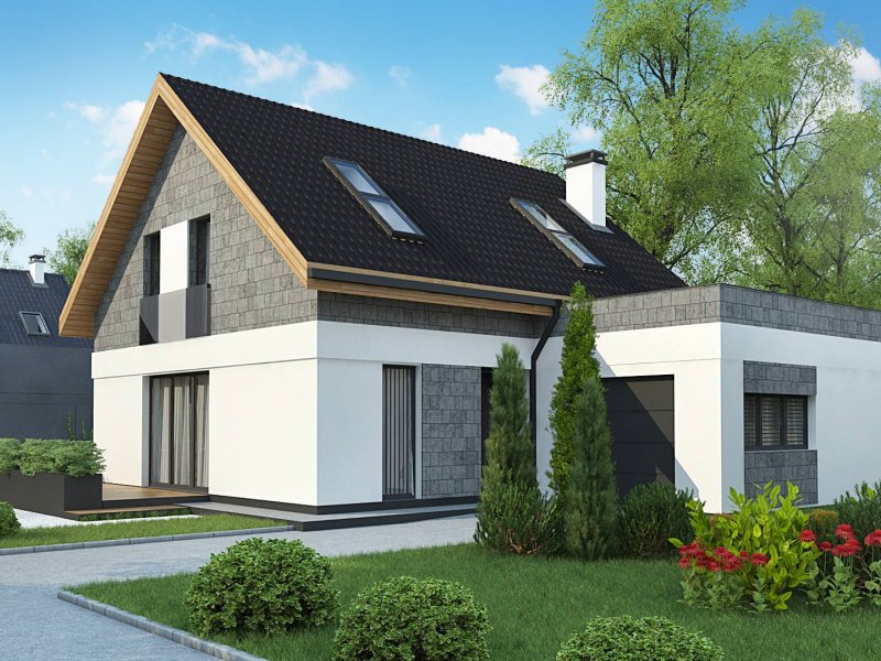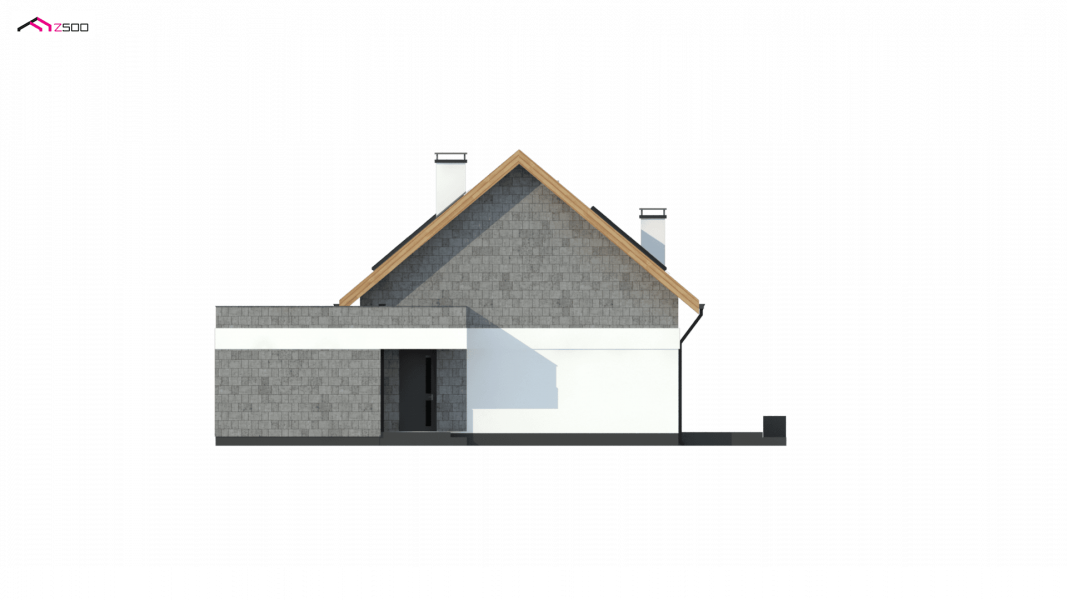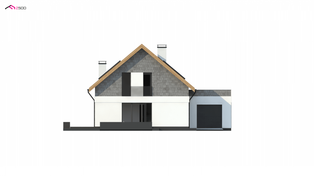 Z371 to klasyczny projekt domu jednorodzinnego z dachem dwuspadowym oraz nowoczesnym, płaskim dachem nad jednostanowiskowym garażem.