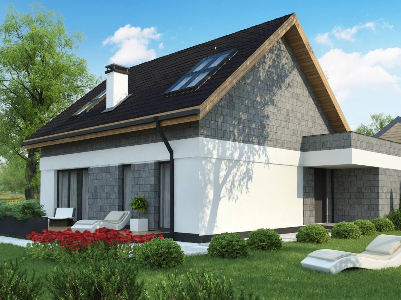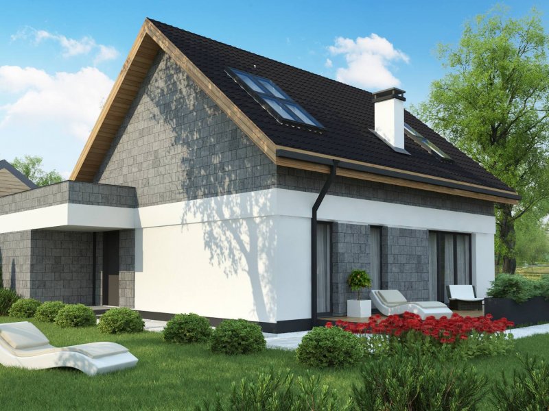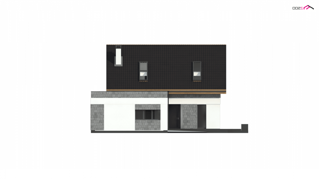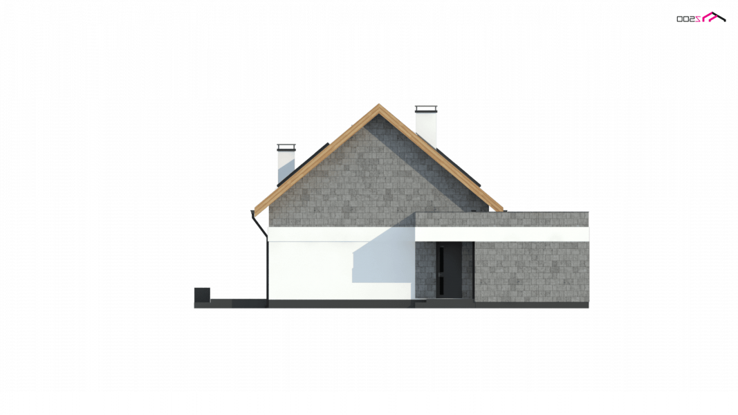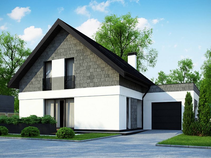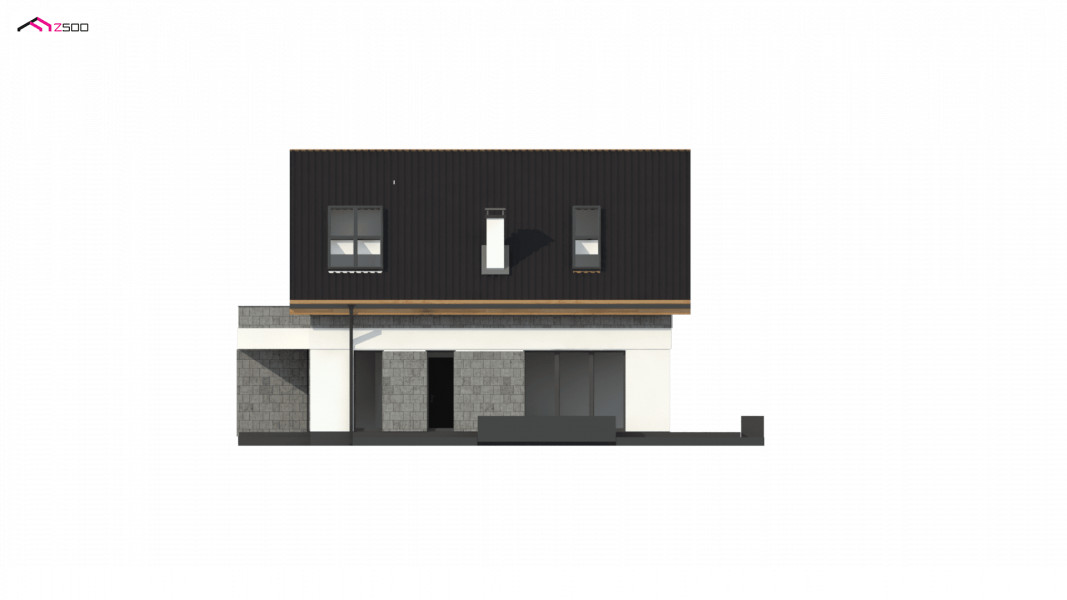 Z371 to klasyczny projekt domu jednorodzinnego z dachem dwuspadowym oraz nowoczesnym, płaskim dachem nad jednostanowiskowym garażem.