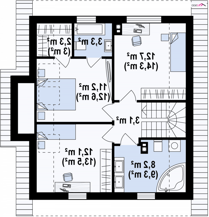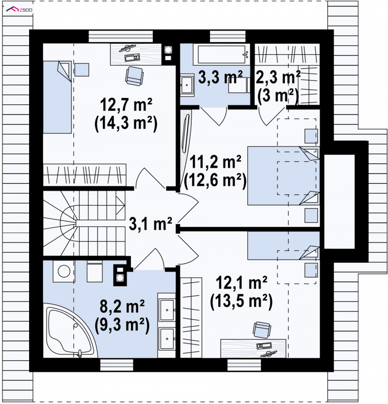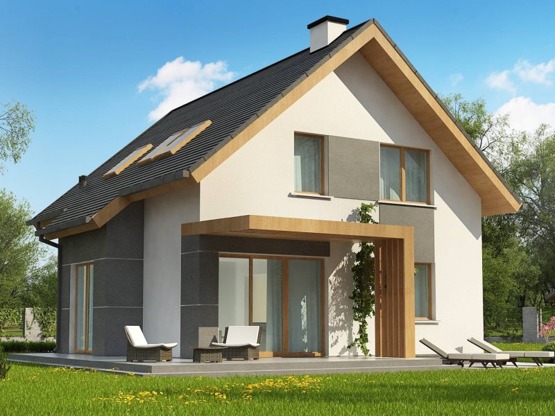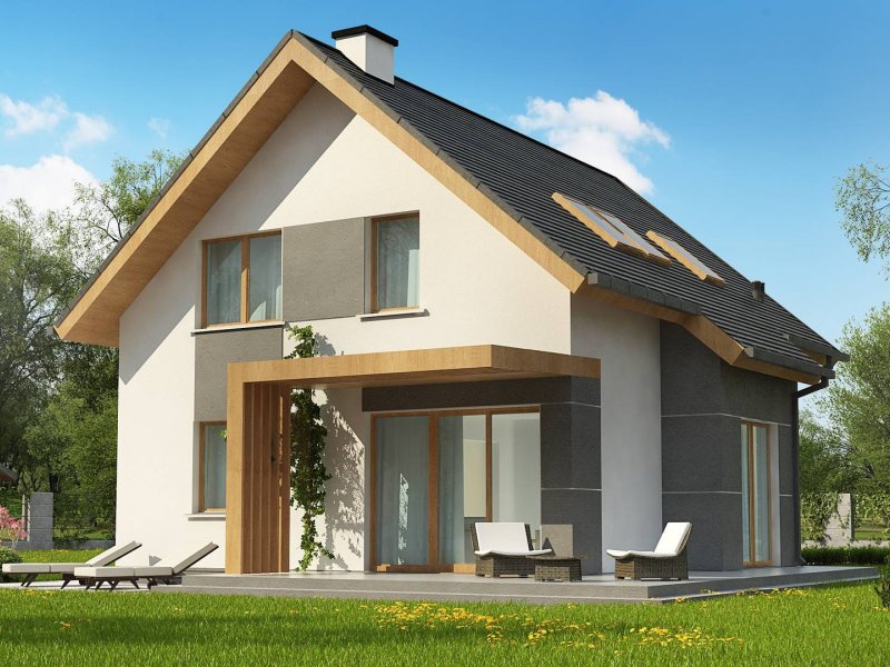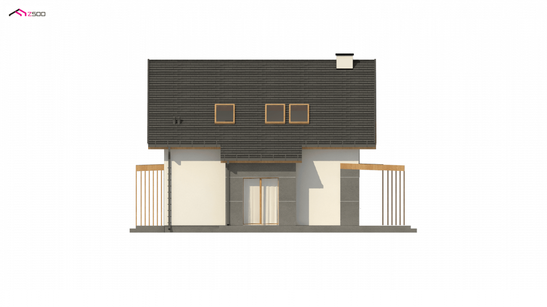 Z44 to projekt nowoczesnego domu z poddaszem. Spadzisty dach, który dodatkowo zdobią okna połaciowe oraz połączenie bieli elewacji z ciemnym kolorem dachu daje wrażenie klasycznej elegancji.