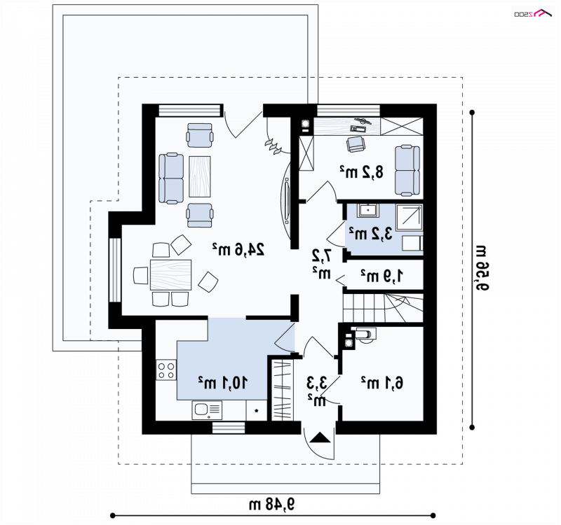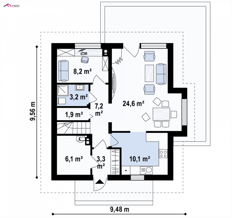 Projekt Z44 jest średniej wielkości domem przeznaczonym dla niedużych rodzin ale o wielkich sercach.