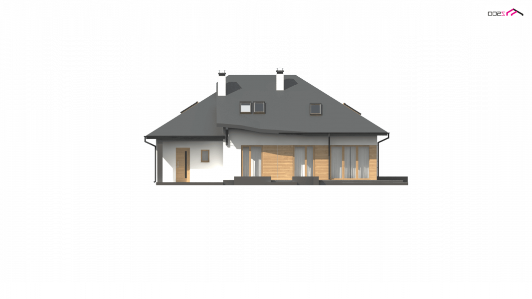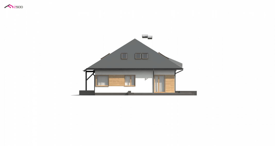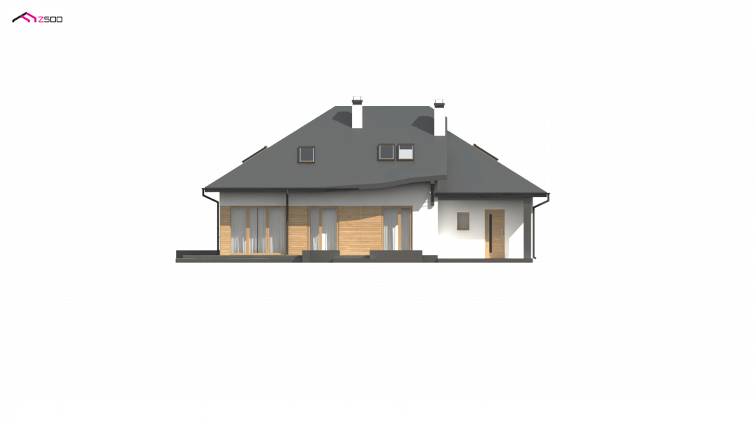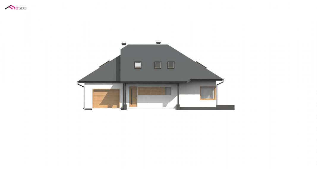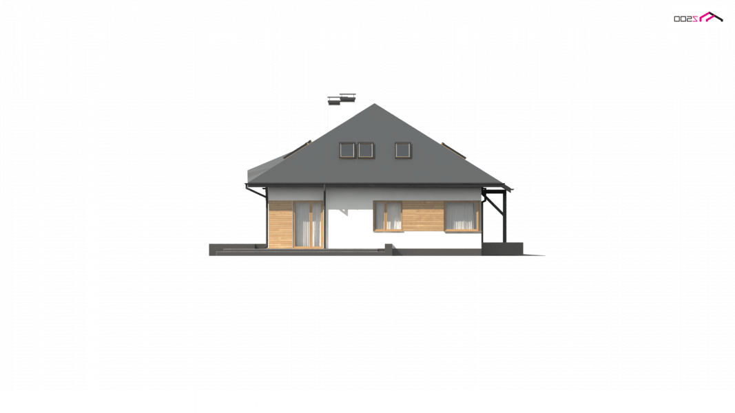 Projekt Z56 A, to nowoczesna rezydencja jednorodzinna, która uzyskała wiele ciekawych rozwiązań m.in. modernistyczną elewacje, składających się kilku płaszczyzn: drewnianej, z przeszkleniami oraz kontrastującymi białymi formami. Kolorystyka utrzymana jest w ciepłych odcieniach drewna (brązy), bieli tynków oraz delikatnych szarościach odcinających się od płaszczyzn pionowych.