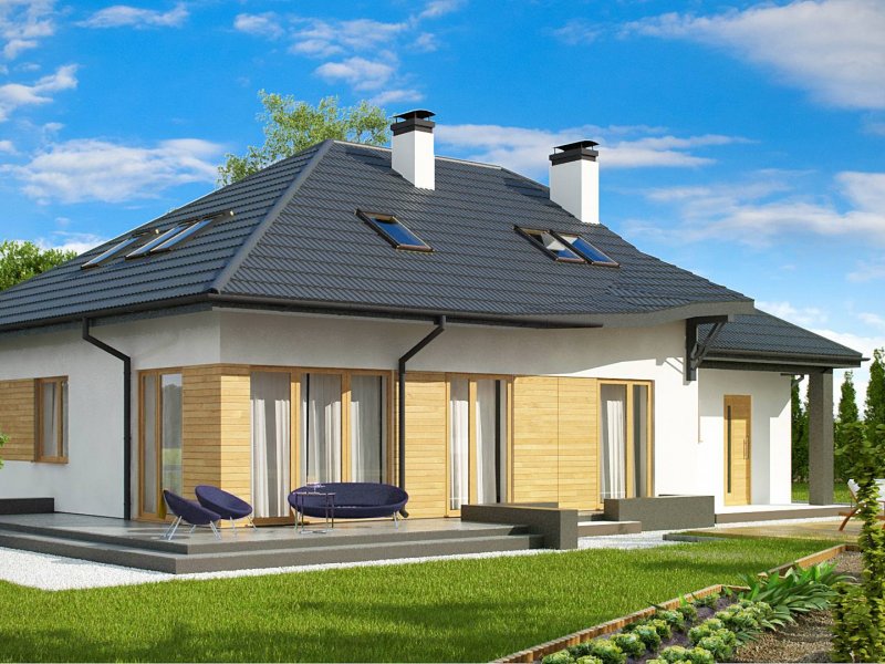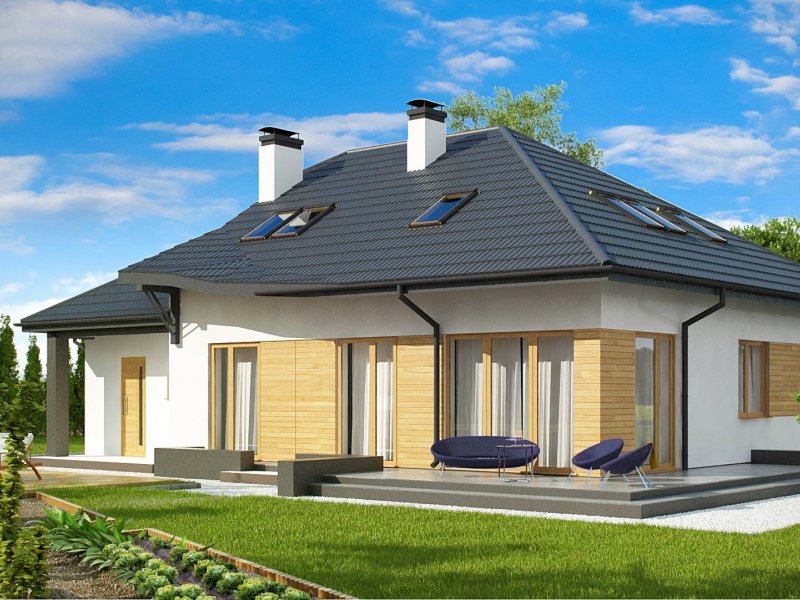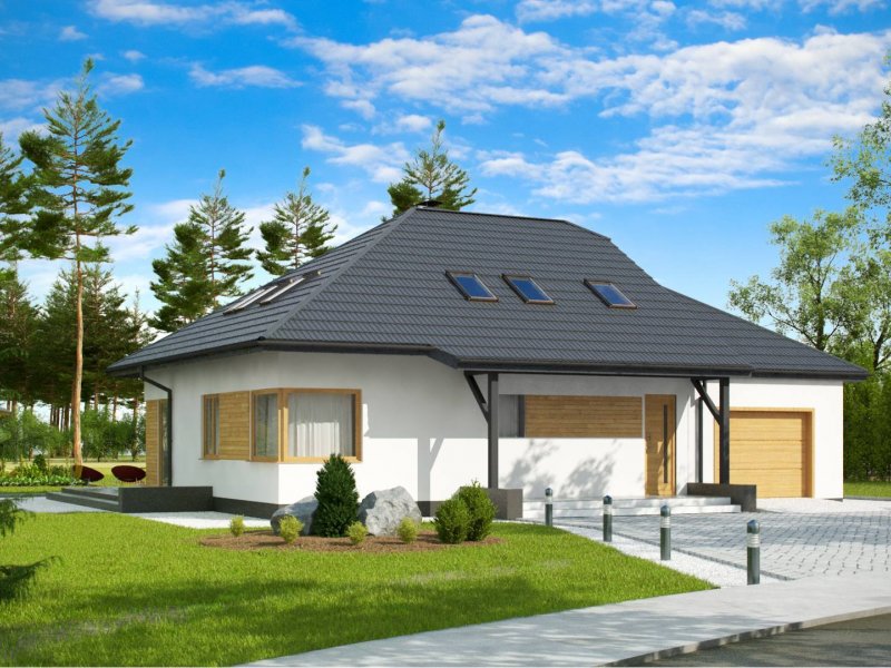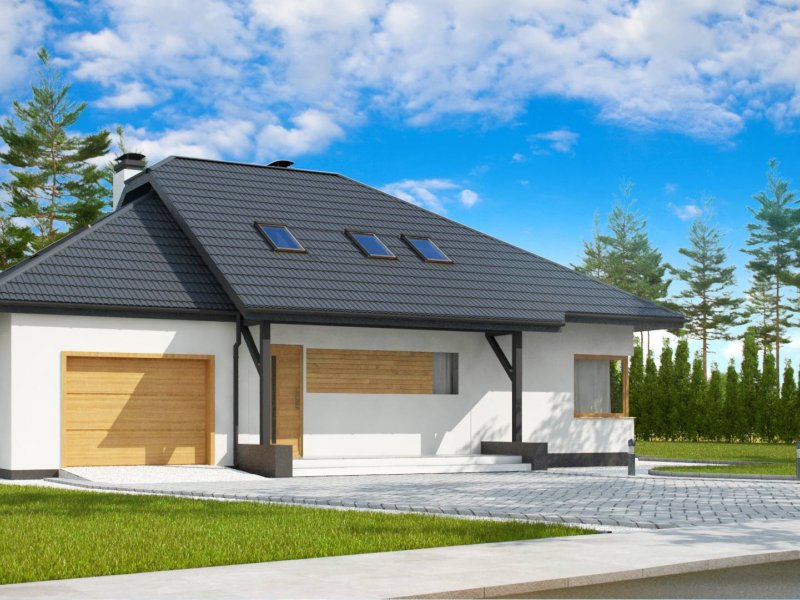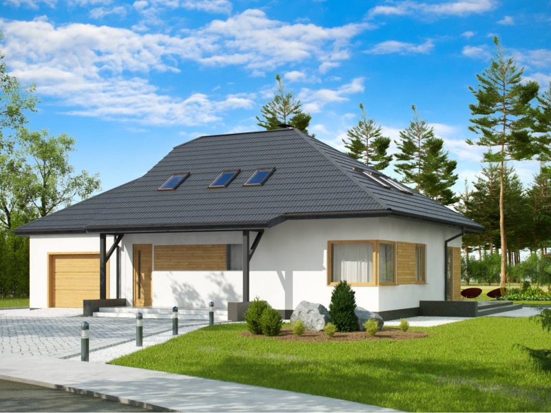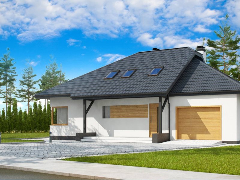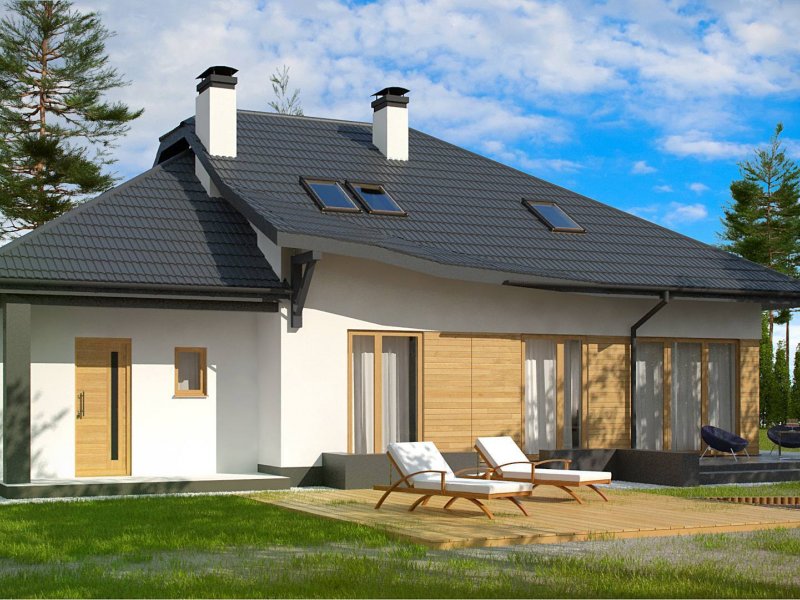 Projekt Z56 A, to nowoczesna rezydencja jednorodzinna, która uzyskała wiele ciekawych rozwiązań m.in. modernistyczną elewacje, składających się kilku płaszczyzn: drewnianej, z przeszkleniami oraz kontrastującymi białymi formami. Kolorystyka utrzymana jest w ciepłych odcieniach drewna (brązy), bieli tynków oraz delikatnych szarościach odcinających się od płaszczyzn pionowych.