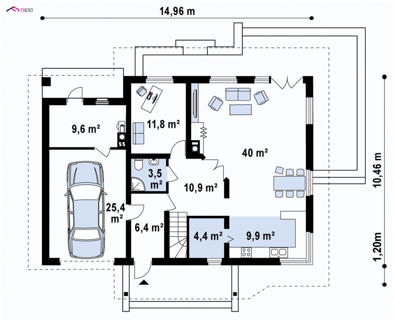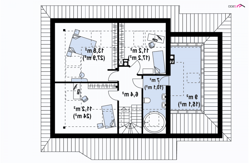 Dom daje możliwość stworzenia domowego SPA – możliwość zadbania o siebie nie przekraczając progu własnego domu! Jeśli marzy Ci się wyjazd do SPA, ale wciąż coś staje na przeszkodzie? Rozwiązaniem może być zorganizowanie sobie SPA w domowym zaciszu. Z56 to dom, który może Ci, to dać! Właśnie on zadba o Twoje dobre samopoczucie i zdrowie. Na poddaszu posiada przestronny salon kąpielowy z możliwością zaaranżowania własnego domowego SPA dzięki wykorzystaniu przestrzeni nad garażem, gdzie może się znaleźć np. sauna, mała siłownia.