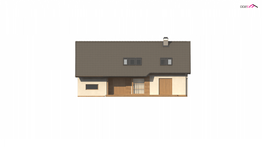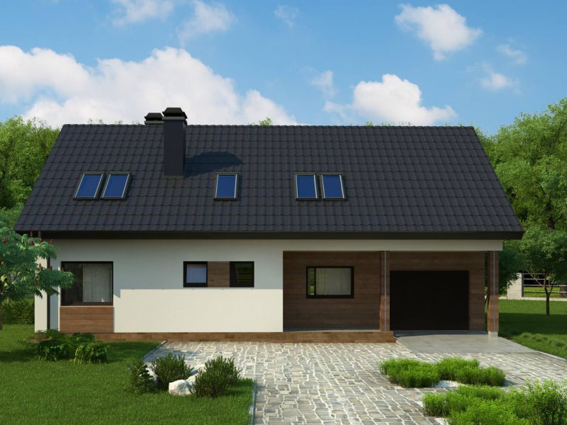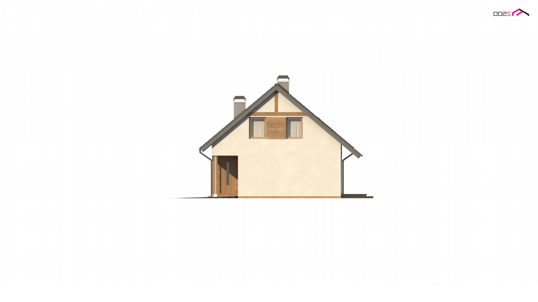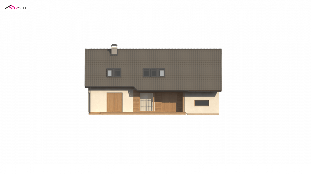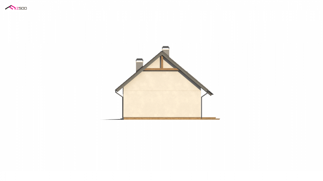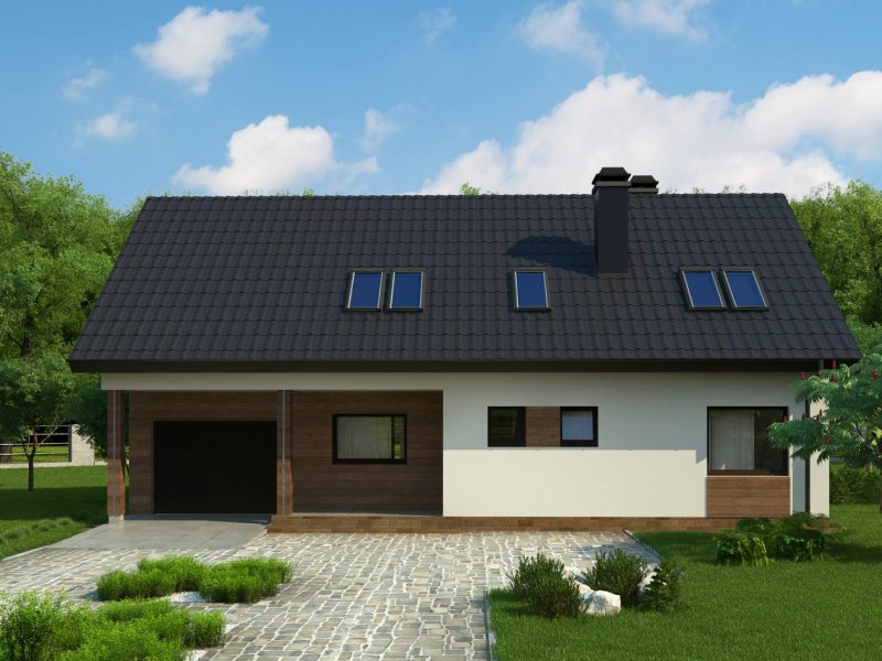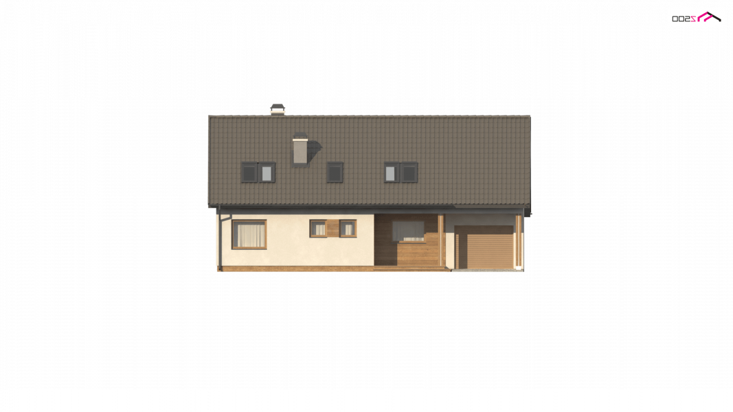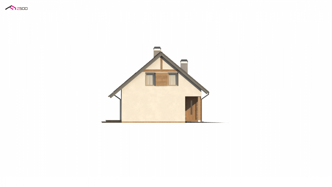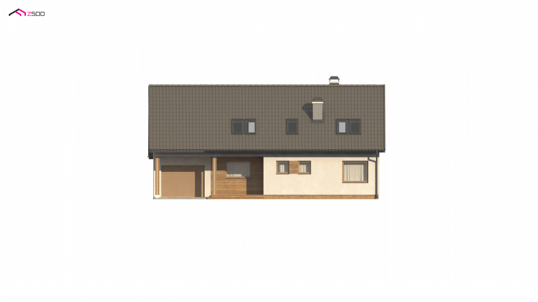 Projekt w wersji z garażem po lewej stronie budynku. Nad garażem przewidziano opcję poddasza użytkowego, co powiększy powierzchnię użytkową.