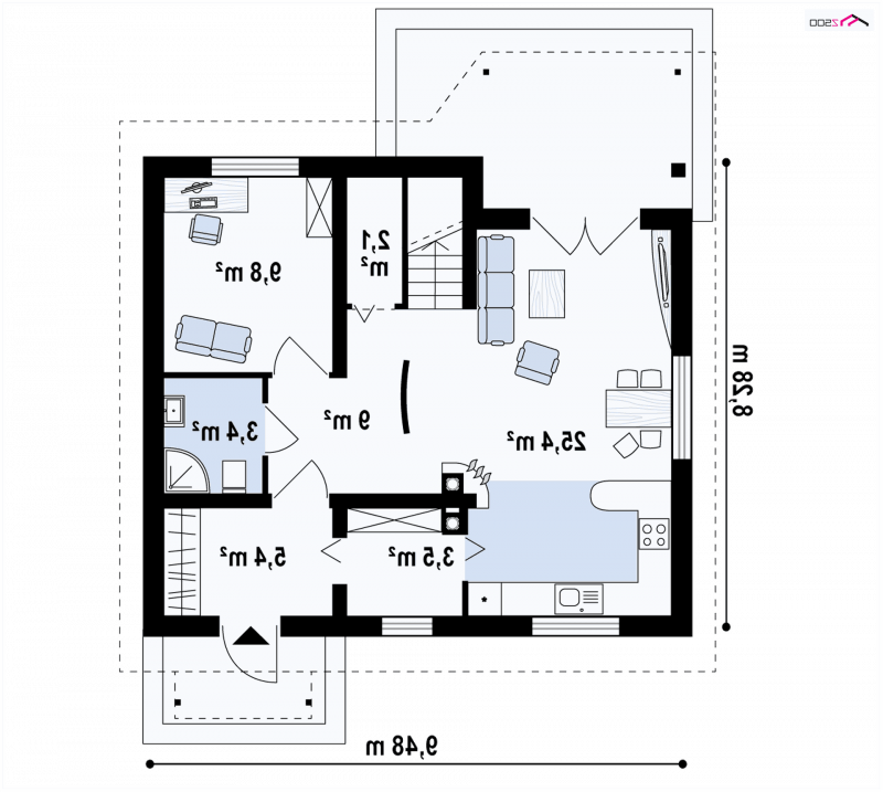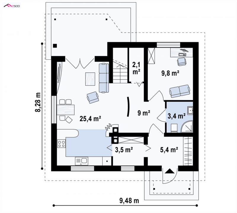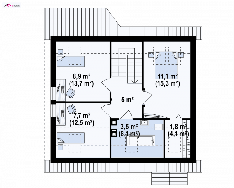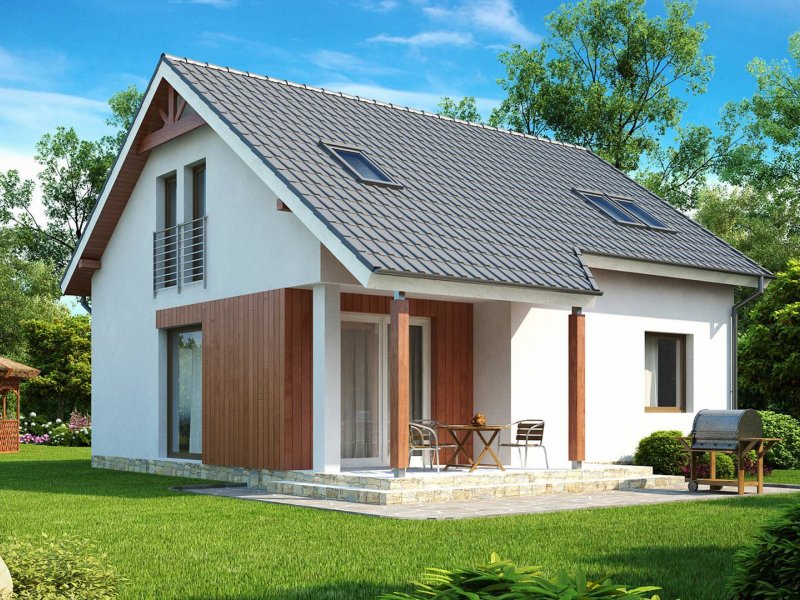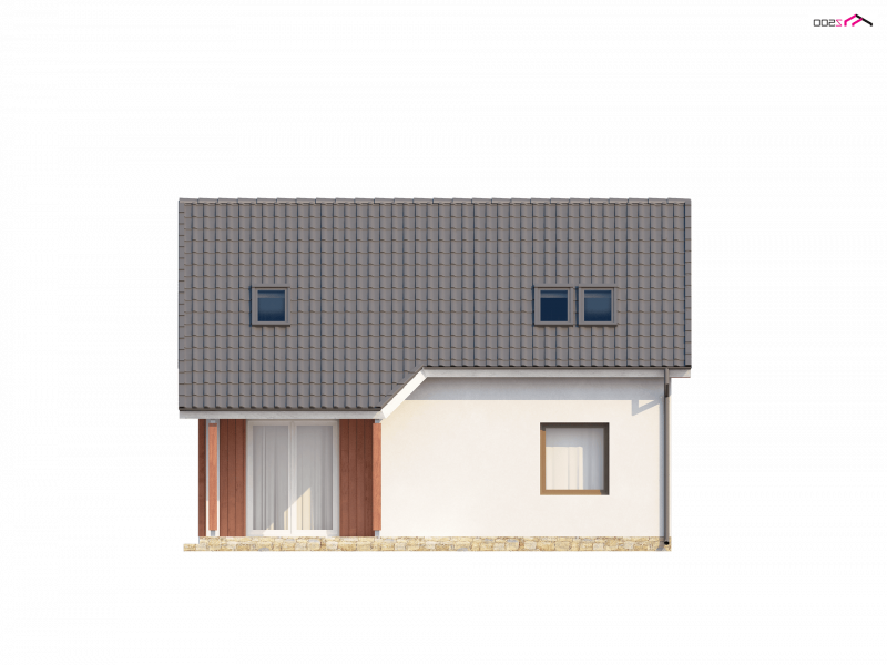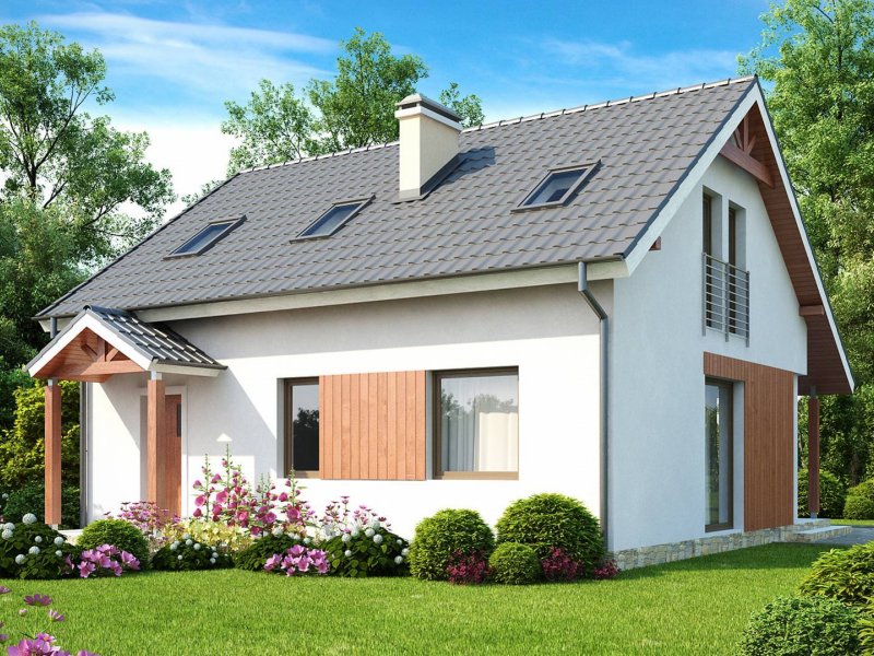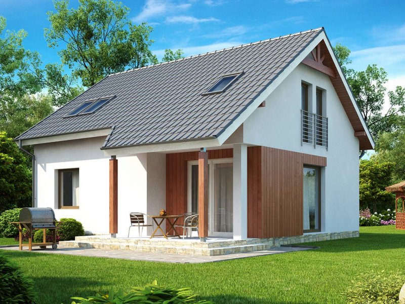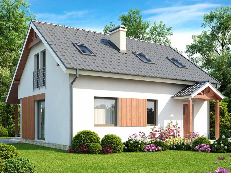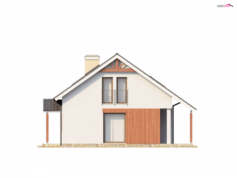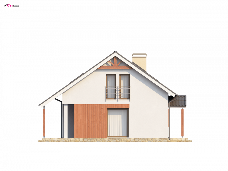Projekt Z75 jest niewielkim i tanim w realizacji domem piętrowym z dachem dwuspadowym. Wzbogacenie elewacji drewnianymi elementami doda mu dodatkowego uroku, a tym samym wzbogaci walory estetyczne.