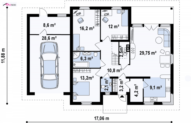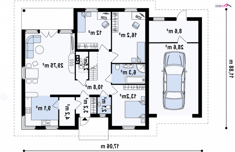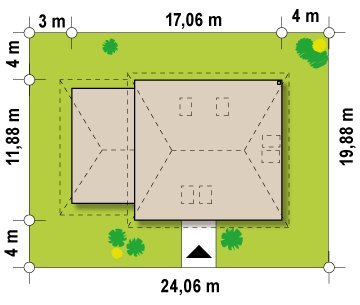 - Min. wymiary działki 19.88x24.06 m