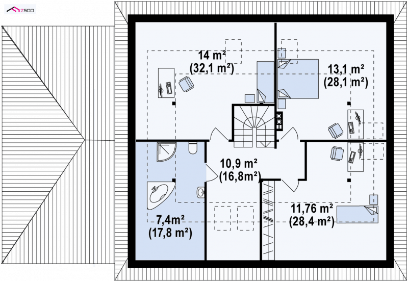 - Powierzchnia dachu 275.10 m²