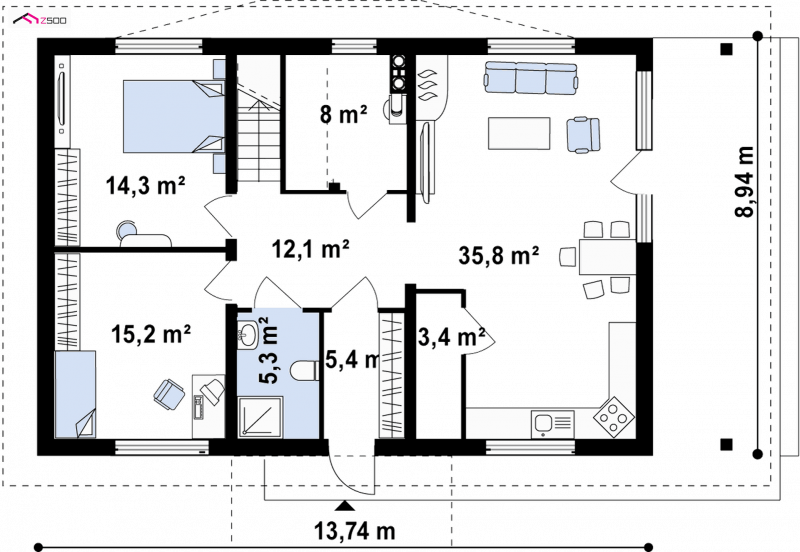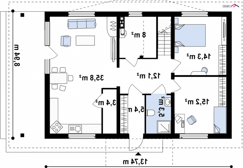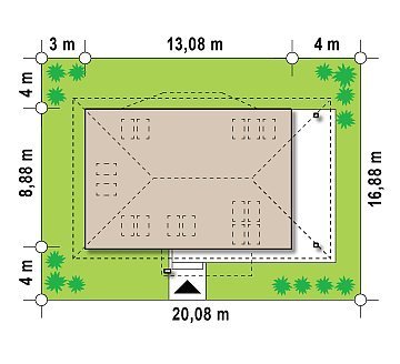 - Min. wymiary działki 16.94x20.74 m