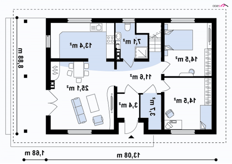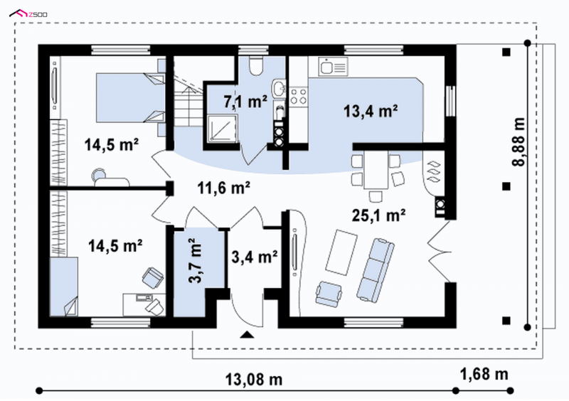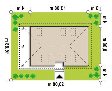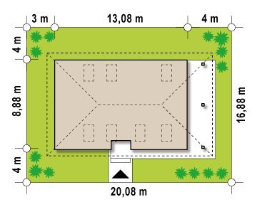 - Min. wymiary działki 16.88x20.08 m