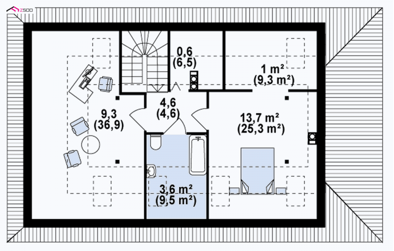 - Powierzchnia dachu 188.60 m²