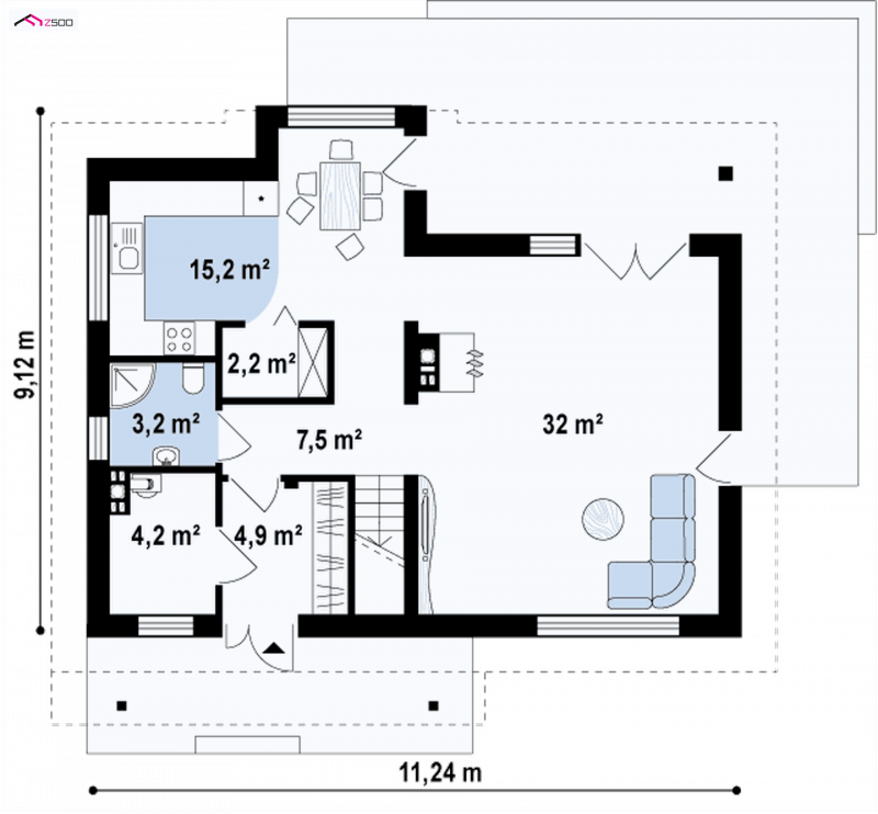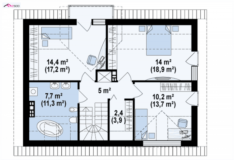 Z89 to przytulny dom z poddaszem użytkowym o funkcjonalnie rozplanowanym wnętrzu. Prostą, zwartą bryłę z dwuspadowym dachem ubrano w nowoczesne elewacje.