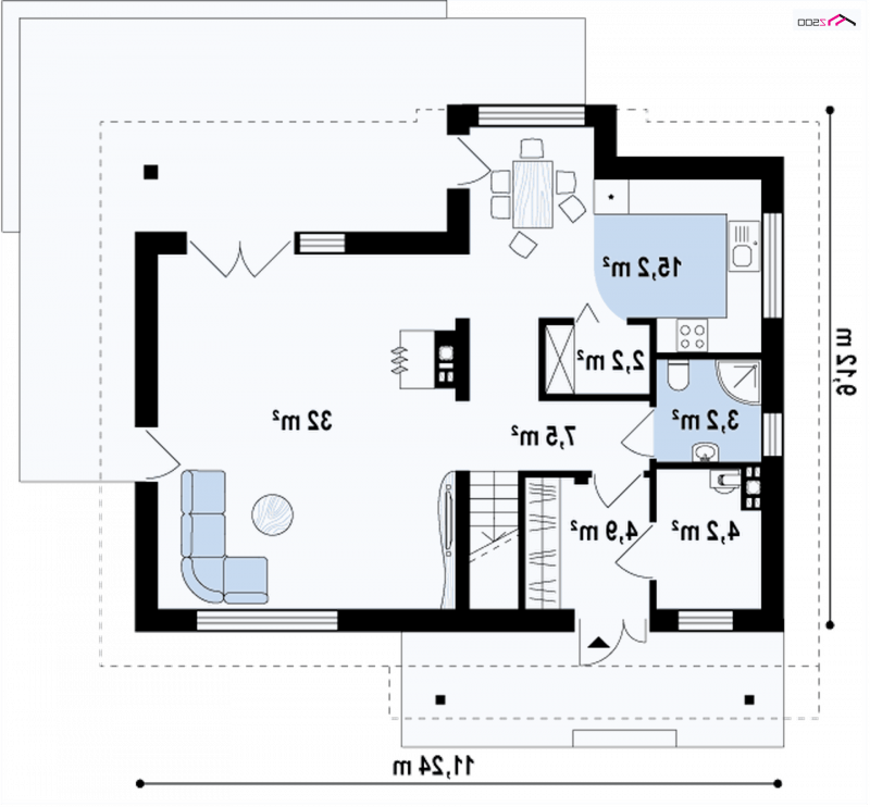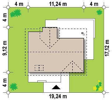 - Min. wymiary działki 17.12x19.24 m