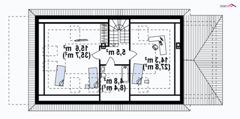 - Kąt nachylenia dachu 32.00°