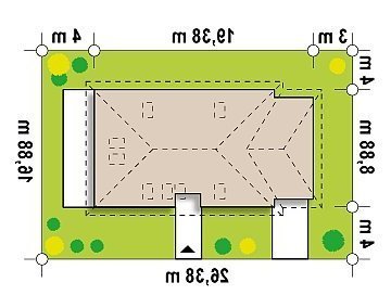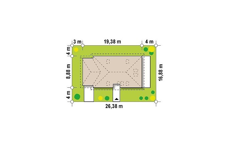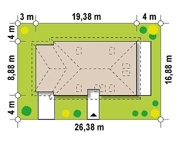 - Min. wymiary działki 16.88x26.38 m