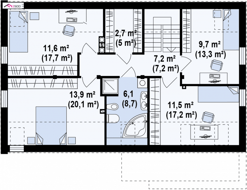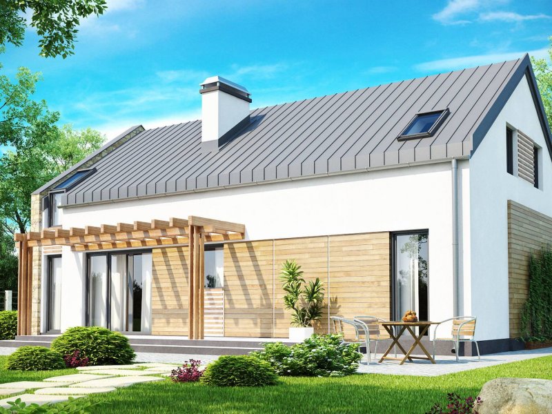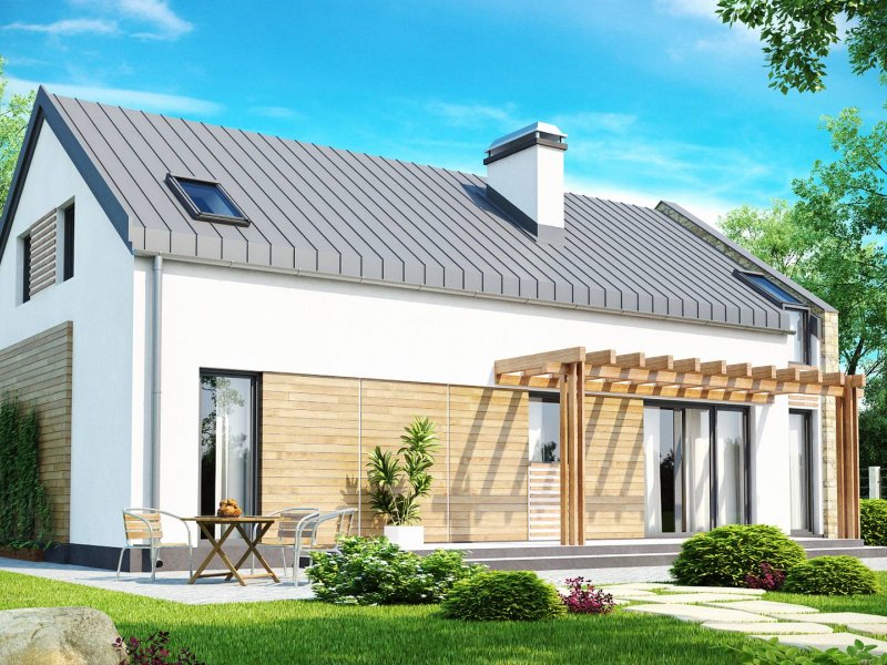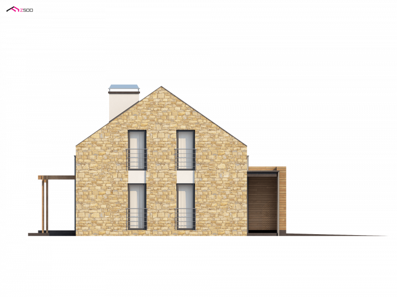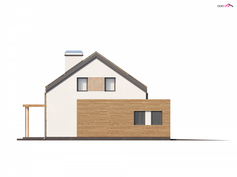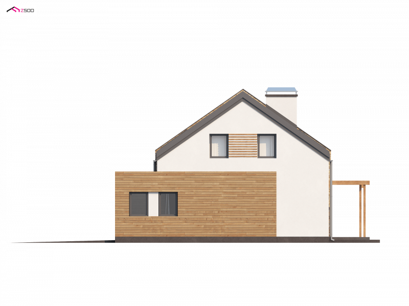 Zx38 to dom o prostej, zwartej bryle. Dach dwuspadowy oraz jeden komin czynią go energooszczędnym i tanim w budowie.
