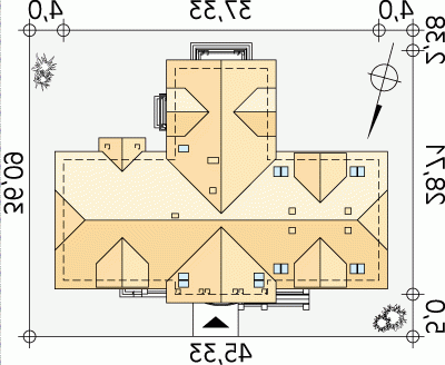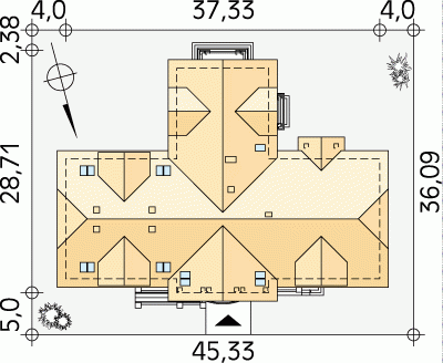Ściany: 3-warstwowe - pustak ceramiczny + styropian, Stropy: żelbetowe, wylewane, Dach: dachówka ceramiczna, kąt nachylenia 35°