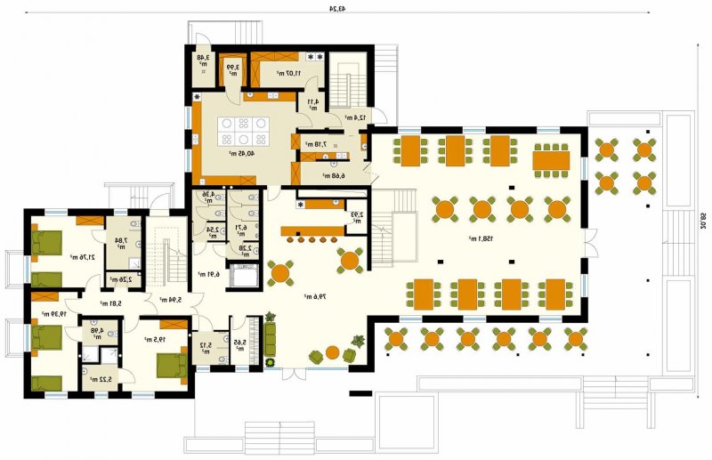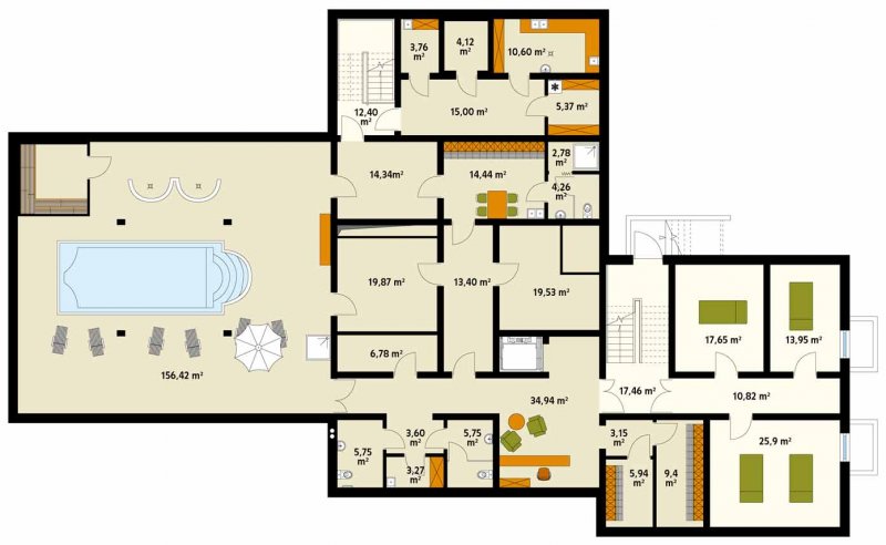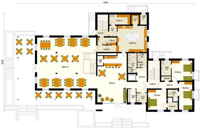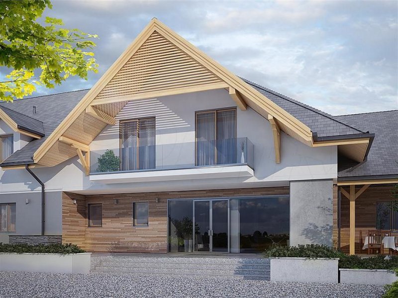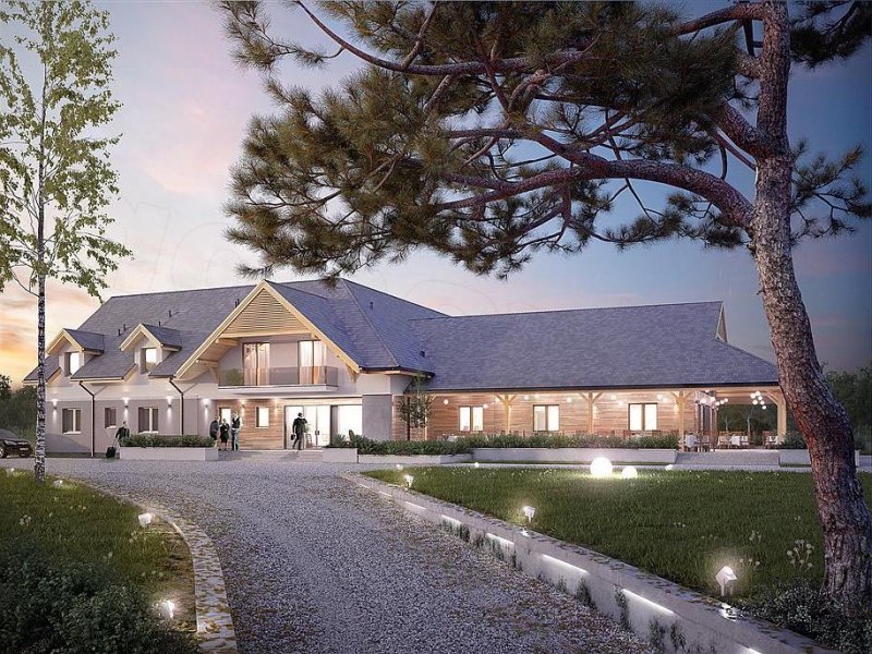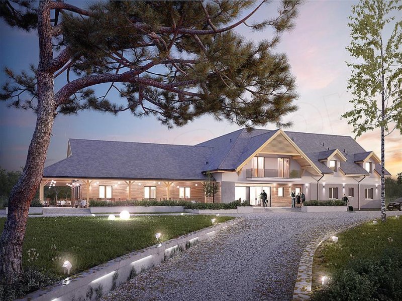 Libera to klimatyczny pensjonat z użytkowym poddaszem oraz centrum rekreacyjnym SPA w podpiwniczeniu. Na parterze znajduje się sala restauracyjna z antresolą, umożliwiająca organizację imprez okolicznościowych oraz dobrze zorganizowane zaplecze kuchenne. Goście do dyspozycji posiadają także bar oraz przestronny hol z miejscem do odpoczynku. Dodatkowo na parterze znajdują się trzy pokoje dostosowane do potrzeb osób niepełnosprawnych. Na poddaszu zaprojektowano osiem pokoi oraz salę konferencyjną z możliwością przejścia na antresolę w sali restauracyjnej. W piwnicy zlokalizowano centrum SPA z basem, sauną oraz pomieszczeniami rekreacyjnymi z możliwością ich zagospodarowania na gabinety odnowy biologicznej. Budynek idealnie wkomponuje się w otoczenie, dzięki zastosowaniu naturalnych odcieni szarości oraz drewna na elewacji. Przestronny, zadaszony taras biegnący wzdłuż części restauracyjnej umożliwi gościom odpoczynek niezależnie od panujących na zewnątrz warunków atmosferycznych.