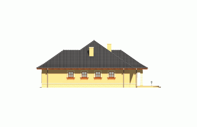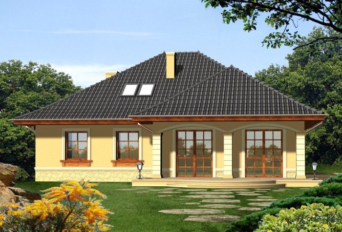 Ściany budynku zaprojektowano z betonu komórkowego z warstwą ocieplenia lub w innej technologii w ramach adaptacji. Strop gęstożebrowy, więźba drewniana, pokrycie dachówką ceramiczną lub cementową. Inne pokrycia w ramach adaptacji. Elewacje tynkowane, elementy fasad okładane płytką kamienną lub tynkowane.