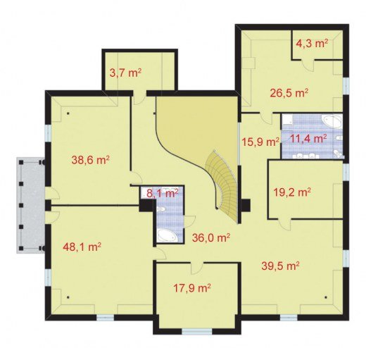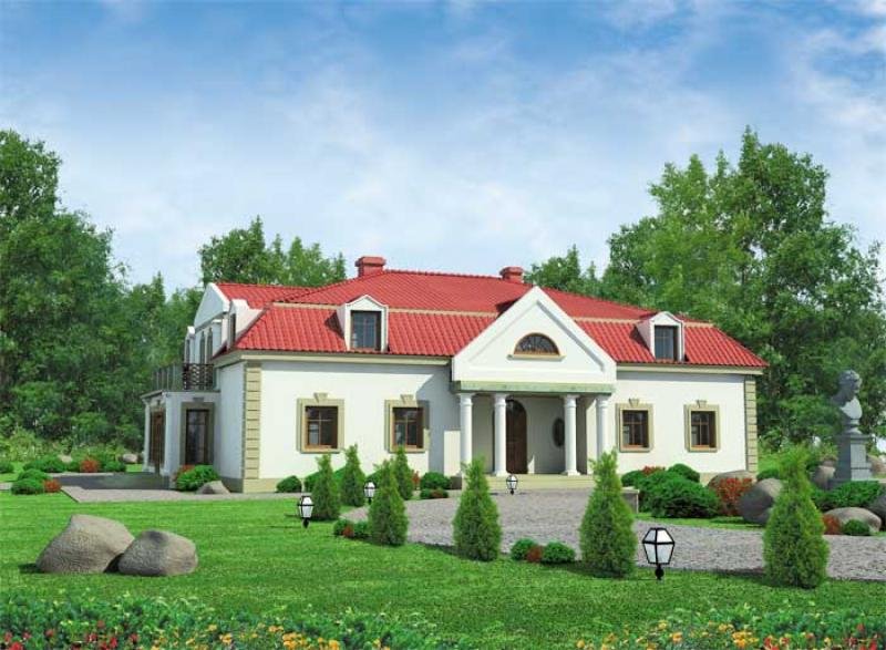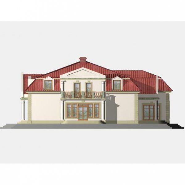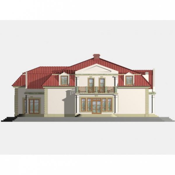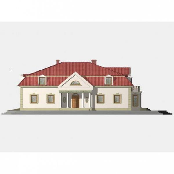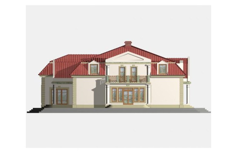 "Virginia: To dom, który można równie dobrze nazwać gustownym zameczkiem. Przednia i tylnia elewacja zostały podkreślone portykami uwieńczonymi trójkątnymi frontonami, które nadają całej rezydencji iście królewskiego wyglądu. Dodatkowymi elementami przykuwającymi wzrok są eleganckie wykończenia kamienne wokół okien i przy krawędziach budynku oraz oryginalny dwuspadowy dach, z którego wychodzą pionowe okna zwane lukarnami, których celem jest doświetlenie poddasza. Ten ogromny dom składa się z piwnicy, parteru oraz poddasza, które w sumie mieszczą 24 pomieszczenia- począwszy od tych tradycyjnych typu kuchnia, łazienka, sypialnia, po te, które można zagospodarować wedle własnej kreatywności i upodobań. Nadto budynek został wyposażony w dwa garaże, saunę oraz duży basen. Virginia jest diamentem pośród innych domów i domeczków, którego wszyscy będą mogli tylko pozazdrościć! Projekt składa się z części architektonicznej, konstrukcyjnej, wewnętrznych instalacji wod.-kan, c. o. i elektrycznej. W projekcie załączone są podstawowe zestawienie stali, drewna i stolarki okienno-drzwiowej. Do projektu dołączamy bezpłatną zgodę na wprowadzenie zmian, oświadczenie projektantów o wykonaniu projektu zgodnie z obowiązującymi normami i przepisami oraz kserokopie uprawnień projektantów wraz z aktualnym wpisem do izby. W przypadku zamówienia projektu w technologii lekkiej, drewnianej konstrukcji szkieletowej, powierzchnia użytkowa budynku jest o około 7% większa.