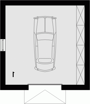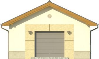 Budynek garażu niepodpiwniczony,parterowy. Mieści się wnim jeden samochód osobowy. Dzięki niewielkiemu kątowi nachyleniapołaci dachowych (25 stopni), garaż ten świetnie pasował będziedo parterowych domów z naszej oferty. Dokumentacja dostępna równieżw odbiciu lustrzanym.