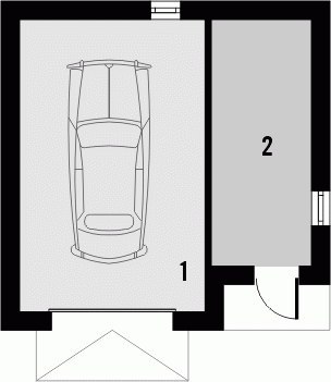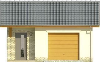 Budynek garażu niepodpiwniczony,parterowy. Mieści się wnim jeden samochód osobowy. Dzięki niewielkiemu kątowi nachyleniapołaci dachowych (25 stopni), garaż ten świetnie pasował będziedo parterowych domów z naszej oferty. Dokumentacja dostępna równieżw odbiciu lustrzanym.