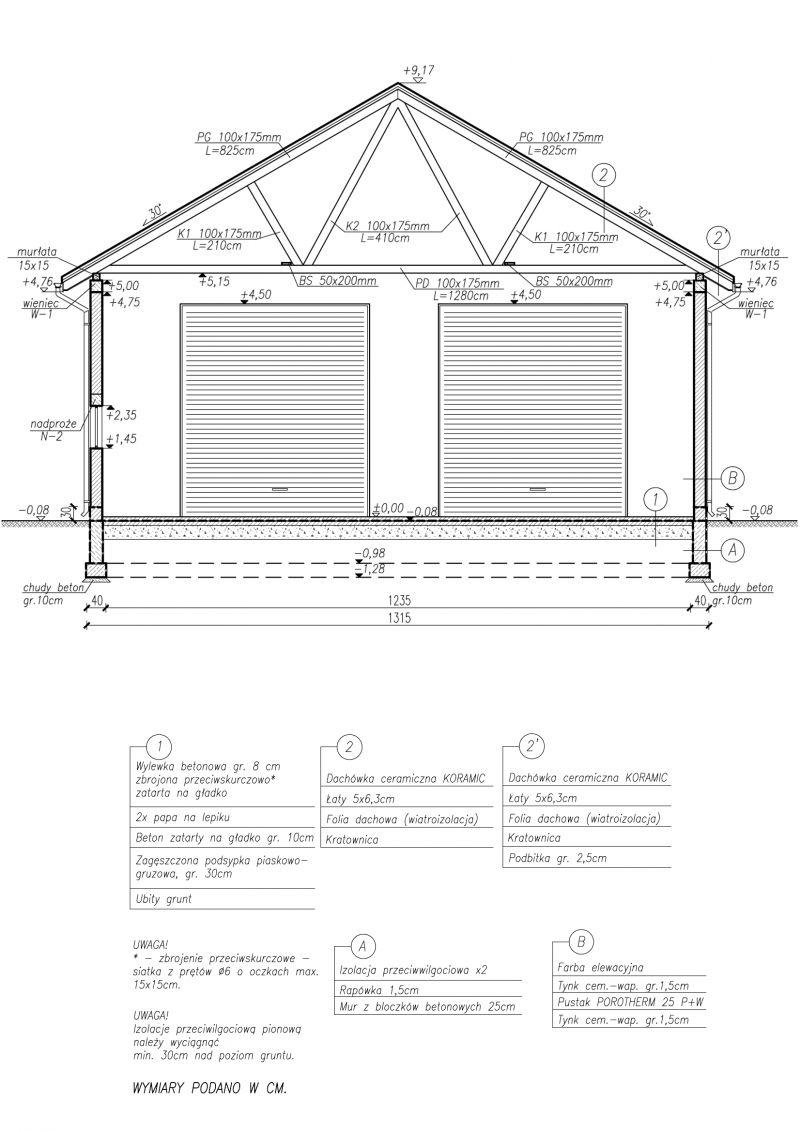 - wymiar bramy garażowej 4,0x4,5m