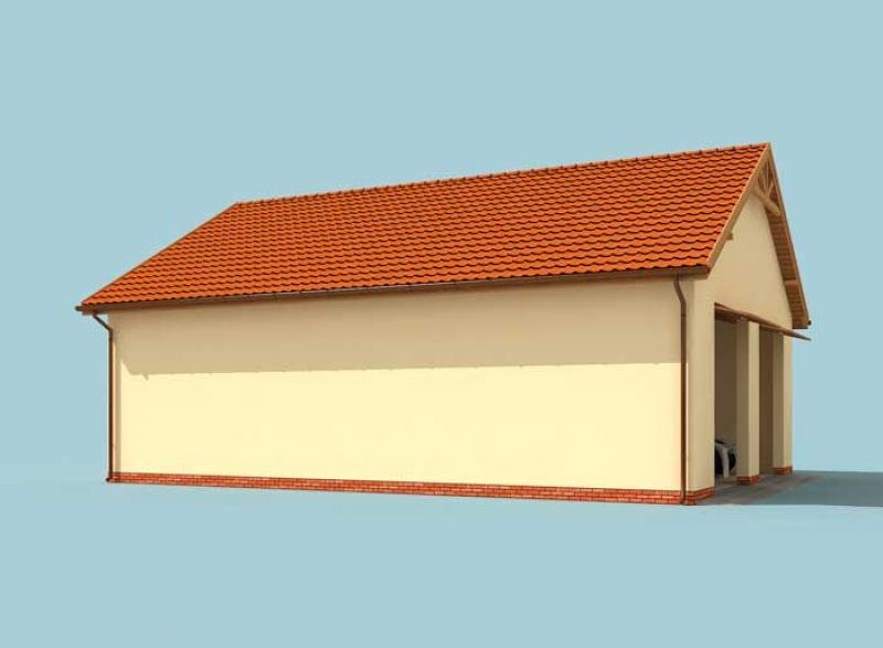 Budynek gospodarczy, wolnostojący. Projekt składa się z części architektonicznej, konstrukcyjnej i wewnętrznej instalacji elektrycznej. W projekcie załączone są podstawowe zestawienie stali, drewna i stolarki okienno-drzwiowej. Do projektu dołączamy bezpłatną zgodę na wprowadzenie zmian, oświadczenie projektantów o wykonaniu projektu zgodnie z obowiązującymi normami i przepisami oraz kserokopie uprawnień projektantów wraz z aktualnym wpisem do izby. W przypadku zamówienia projektu w technologii lekkiej, drewnianej konstrukcji szkieletowej, powierzchnia użytkowa budynku jest o około 7% większa.