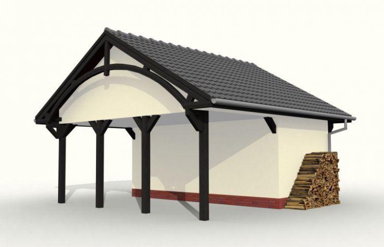 Budynek gospodarczy, wolnostojący. Projekt składa się z części architektonicznej, konstrukcyjnej i wewnętrznej instalacji elektrycznej. W projekcie załączone są podstawowe zestawienie stali, drewna i stolarki okienno-drzwiowej. Do projektu dołączamy bezpłatną zgodę na wprowadzenie zmian, oświadczenie projektantów o wykonaniu projektu zgodnie z obowiązującymi normami i przepisami oraz kserokopie uprawnień projektantów wraz z aktualnym wpisem do izby. W przypadku zamówienia projektu w technologii lekkiej, drewnianej konstrukcji szkieletowej, powierzchnia użytkowa budynku jest o około 7% większa.