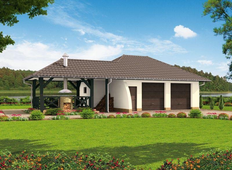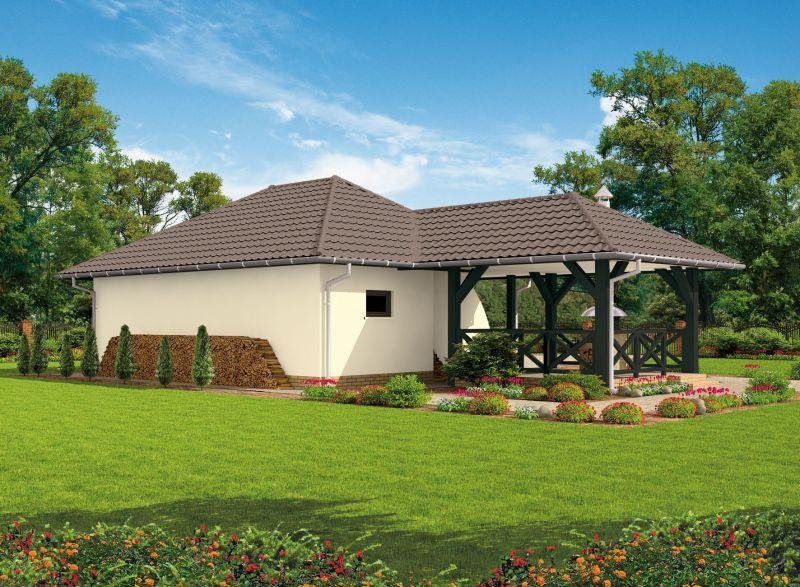 Budynek gospodarczy, wolnostojący. Projekt składa się z części architektonicznej, konstrukcyjnej i wewnętrznej instalacji elektrycznej. W projekcie załączone są podstawowe zestawienie stali, drewna i stolarki okienno-drzwiowej. Do projektu dołączamy bezpłatną zgodę na wprowadzenie zmian, oświadczenie projektantów o wykonaniu projektu zgodnie z obowiązującymi normami i przepisami oraz kserokopie uprawnień projektantów wraz z aktualnym wpisem do izby. W przypadku zamówienia projektu w technologii lekkiej, drewnianej konstrukcji szkieletowej, powierzchnia użytkowa budynku jest o około 7% większa.