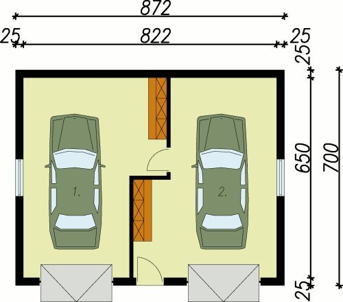 Garaż dwustanowiskowy, wolnostojący, parterowy. Projekt garażu składa się z czterech egzemplarzy a w tym części architektonicznej, konstrukcyjnej i instalacji wewnętrznej elektrycznej. W projekcie załączone są podstawowe zestawienie stali, drewna i stolarki okienno-drzwiowej. Do projektu dołączamy bezpłatną zgodę na wprowadzenie zmian, oświadczenie projektantów o wykonaniu projektu zgodnie z obowiązującymi normami i przepisami oraz kserokopie uprawnień projektantów wraz z aktualnym wpisem do izby.