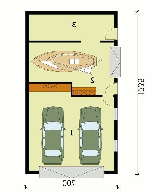 Garaż trzystanowiskowy z pomieszczeniem gospodarczym.