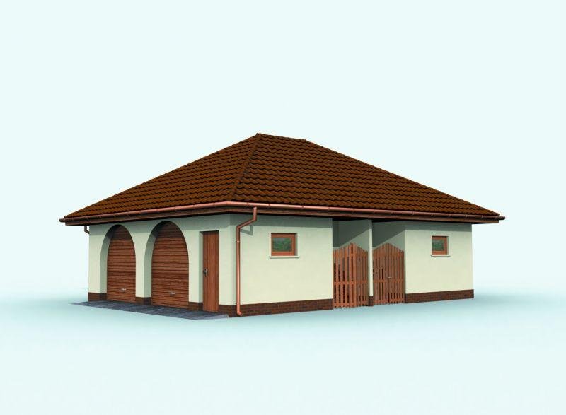 Garaż dwustanowiskowy z pom. gospodarczym,werandą, składem na odpady i drewno kominkowe. Projekt składa się z czterech egzemplarzy a w tym części architektonicznej, konstrukcyjnej i instalacji wewnętrznej elektrycznej. W projekcie załączone są podstawowe zestawienie stali, drewna i stolarki okienno-drzwiowej. Do projektu dołączamy bezpłatną zgodę na wprowadzenie zmian, oświadczenie projektantów o wykonaniu projektu zgodnie z obowiązującymi normami i przepisami oraz kserokopie uprawnień projektantów wraz z aktualnym wpisem do izby.
