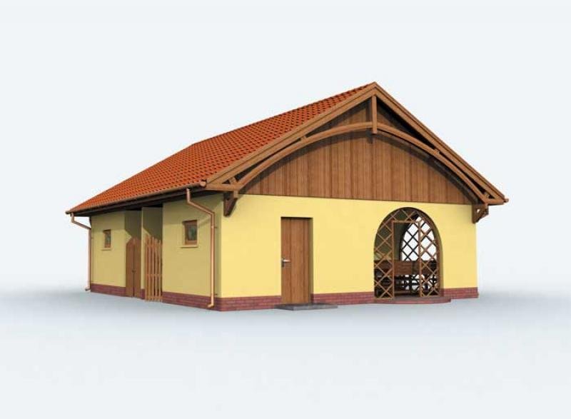 Garaż dwustanowiskowy z pom. gospodarczym,werandą, składem na odpady i drewno kominkowe. Projekt składa się z czterech egzemplarzy a w tym części architektonicznej, konstrukcyjnej i instalacji wewnętrznej elektrycznej. W projekcie załączone są podstawowe zestawienie stali, drewna i stolarki okienno-drzwiowej. Do projektu dołączamy bezpłatną zgodę na wprowadzenie zmian, oświadczenie projektantów o wykonaniu projektu zgodnie z obowiązującymi normami i przepisami oraz kserokopie uprawnień projektantów wraz z aktualnym wpisem do izby.