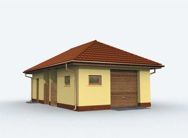 Garaż jednostanowiskowy z pom. gosp., składem na odpady i drewno kominkowe. Projekt garażu składa się z czterech egzemplarzy a w tym części architektonicznej, konstrukcyjnej i instalacji wewnętrznej elektrycznej. W projekcie załączone są podstawowe zestawienie stali, drewna i stolarki okienno-drzwiowej. Do projektu dołączamy bezpłatną zgodę na wprowadzenie zmian, oświadczenie projektantów o wykonaniu projektu zgodnie z obowiązującymi normami i przepisami oraz kserokopie uprawnień projektantów wraz z aktualnym wpisem do izby.