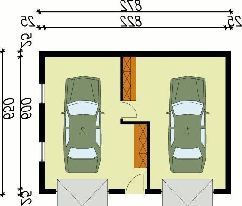 Garaż dwustanowiskowy, parterowy z wydzieloną częścią na pomieszczenie gospodarcze. Wymiary bramy garażowej 2400x2400. Projekt garażu składa się z czterech egzemplarzy a w tym części architektonicznej, konstrukcyjnej i instalacji wewnętrznej elektrycznej. W projekcie załączone są podstawowe zestawienie stali, drewna i stolarki okienno-drzwiowej. Do projektu dołączamy bezpłatną zgodę na wprowadzenie zmian, oświadczenie projektantów o wykonaniu projektu zgodnie z obowiązującymi normami i przepisami oraz kserokopie uprawnień projektantów wraz z aktualnym wpisem do izby.