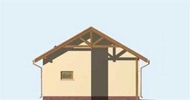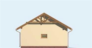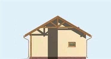 Budynek garażowy trzystanowiskowy z pomieszczeniem gospodarczym i składem na drewno, wolnostojący, niepodpiwniczony. Projekt składa się z części architektonicznej, konstrukcyjnej i wewnętrznej instalacji elektrycznej. W projekcie załączone są podstawowe zestawienie stali, drewna i stolarki okienno-drzwiowej. Do projektu dołączamy bezpłatną zgodę na wprowadzenie zmian, oświadczenie projektantów o wykonaniu projektu zgodnie z obowiązującymi normami i przepisami oraz kserokopie uprawnień projektantów wraz z aktualnym wpisem do izby. W przypadku zamówienia projektu w technologii lekkiej, drewnianej konstrukcji szkieletowej, powierzchnia użytkowa budynku jest o około 7% większa.