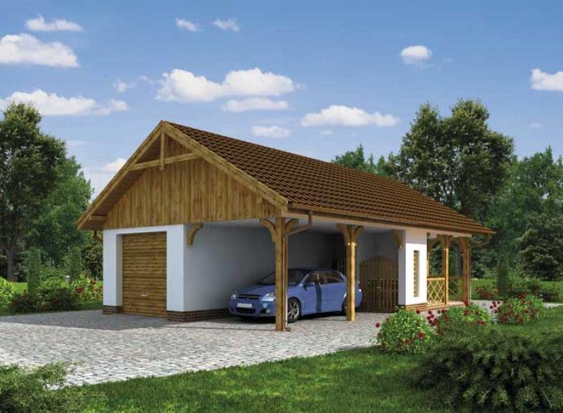 Garaż jednostanowiskowy z wiatą garażową i pomieszczeniem gospodarczym. Projekt garażu składa się z czterech egzemplarzy a w tym części architektonicznej, konstrukcyjnej i instalacji wewnętrznej elektrycznej. W projekcie załączone są podstawowe zestawienie stali, drewna i stolarki okienno-drzwiowej. Do projektu dołączamy bezpłatną zgodę na wprowadzenie zmian, oświadczenie projektantów o wykonaniu projektu zgodnie z obowiązującymi normami i przepisami oraz kserokopie uprawnień projektantów wraz z aktualnym wpisem do izby
