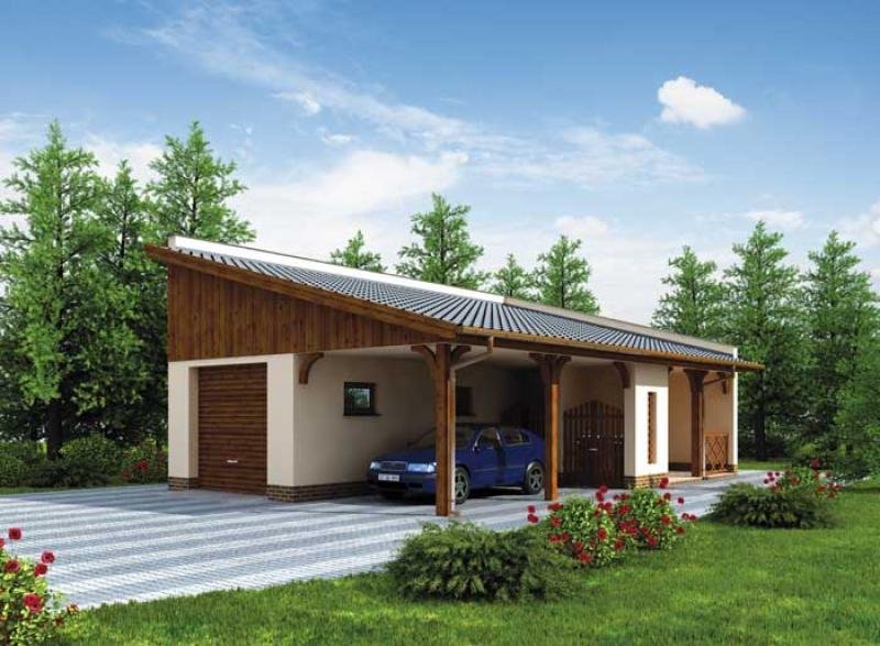 Budynek gospodarczy, wolnostojący. Projekt składa się z części architektonicznej, konstrukcyjnej i wewnętrznej instalacji elektrycznej. W projekcie załączone są podstawowe zestawienie stali, drewna i stolarki okienno-drzwiowej. Do projektu dołączamy bezpłatną zgodę na wprowadzenie zmian, oświadczenie projektantów o wykonaniu projektu zgodnie z obowiązującymi normami i przepisami oraz kserokopie uprawnień projektantów wraz z aktualnym wpisem do izby. W przypadku zamówienia projektu w technologii lekkiej, drewnianej konstrukcji szkieletowej, powierzchnia użytkowa budynku jest o około 7% większa.