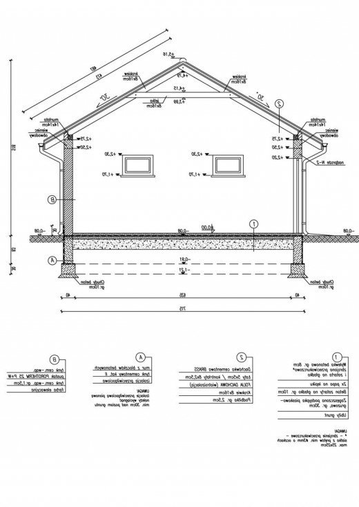 Technologia tradycyjna , ściany murowane grubości 25 cm. Konstrukcja więźby dachowej drewniana, pokrycie dachówka ceramiczna.