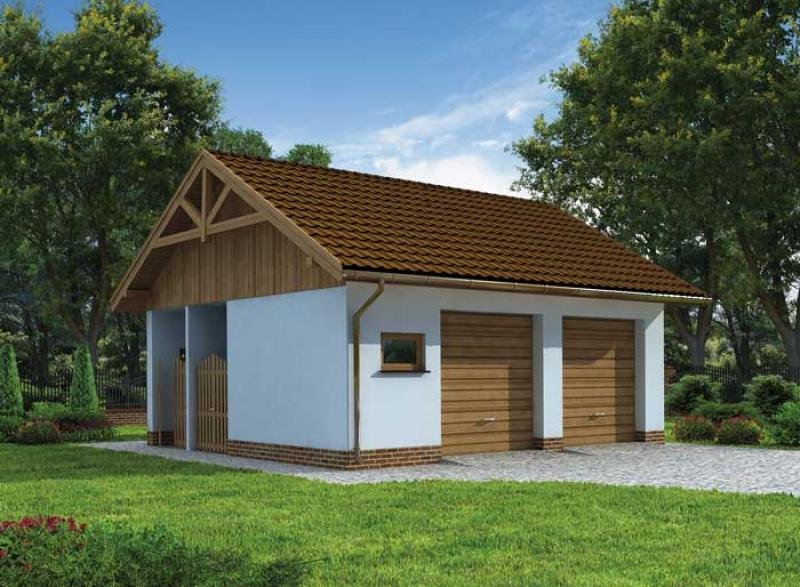Garaż dwustanowiskowy ze składem na drewno i odpady. Projekt garażu składa się z czterech egzemplarzy a w tym części architektonicznej, konstrukcyjnej i instalacji wewnętrznej elektrycznej. W projekcie załączone są podstawowe zestawienie stali, drewna i stolarki okienno-drzwiowej. Do projektu dołączamy bezpłatną zgodę na wprowadzenie zmian, oświadczenie projektantów o wykonaniu projektu zgodnie z obowiązującymi normami i przepisami oraz kserokopie uprawnień projektantów wraz z aktualnym wpisem do izby.