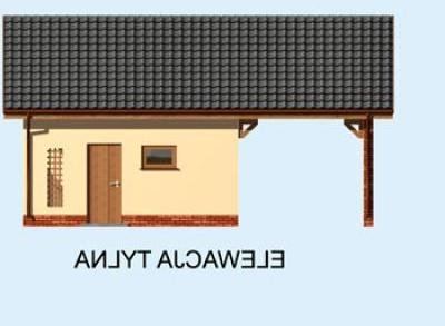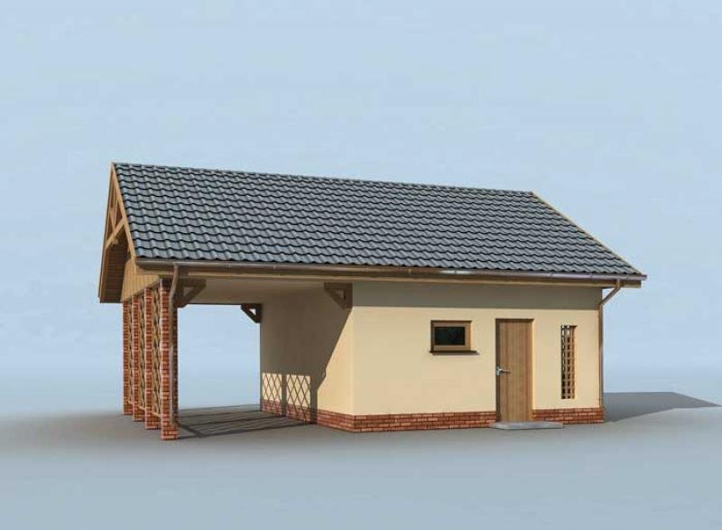 Garaż jednostanowiskowy ze składem na drewno i odpady oraz wiatą.