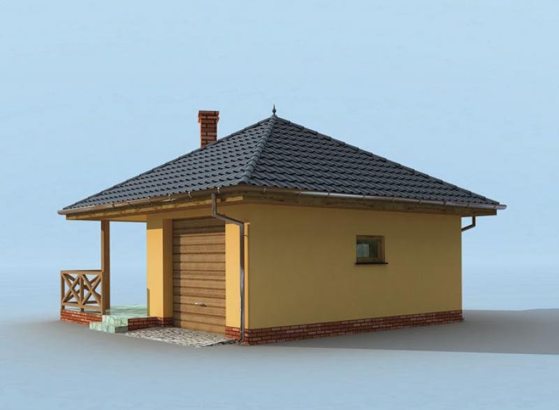 Garaż jednostanowiskowy ze składem na drewno kominkowe, werandą oraz wędzarnikiem. Projekt garażu składa się z czterech egzemplarzy a w tym części architektonicznej, konstrukcyjnej i instalacji wewnętrznej elektrycznej. W projekcie załączone są podstawowe zestawienie stali, drewna i stolarki okienno-drzwiowej. Do projektu dołączamy bezpłatną zgodę na wprowadzenie zmian, oświadczenie projektantów o wykonaniu projektu zgodnie z obowiązującymi normami i przepisami oraz kserokopie uprawnień projektantów wraz z aktualnym wpisem do izby.