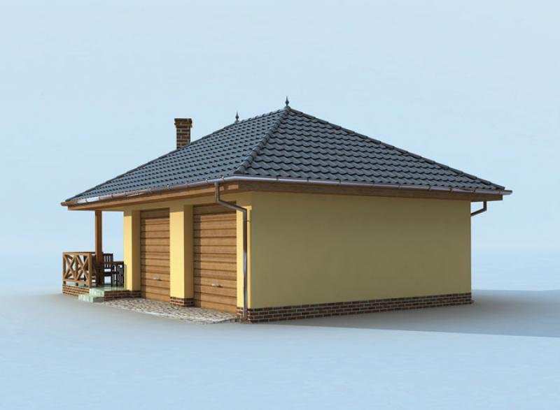 Garaż dwuostanowiskowy ze składem na drewno kominkowe, werandą oraz wędzarnikiem.