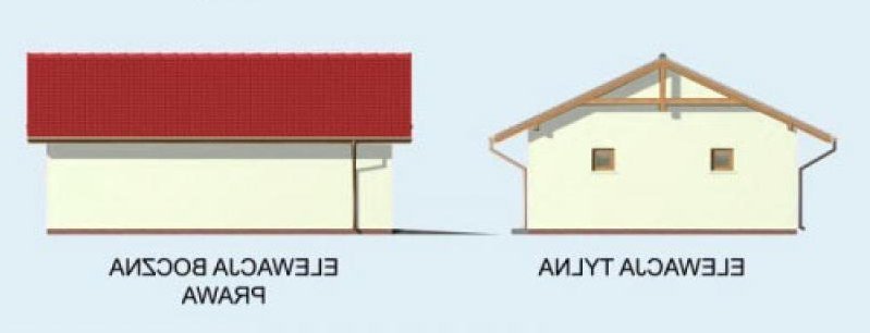 Garaż jednostanowiskowyw technologii szkieletowej, wolnostojący, parterowy.