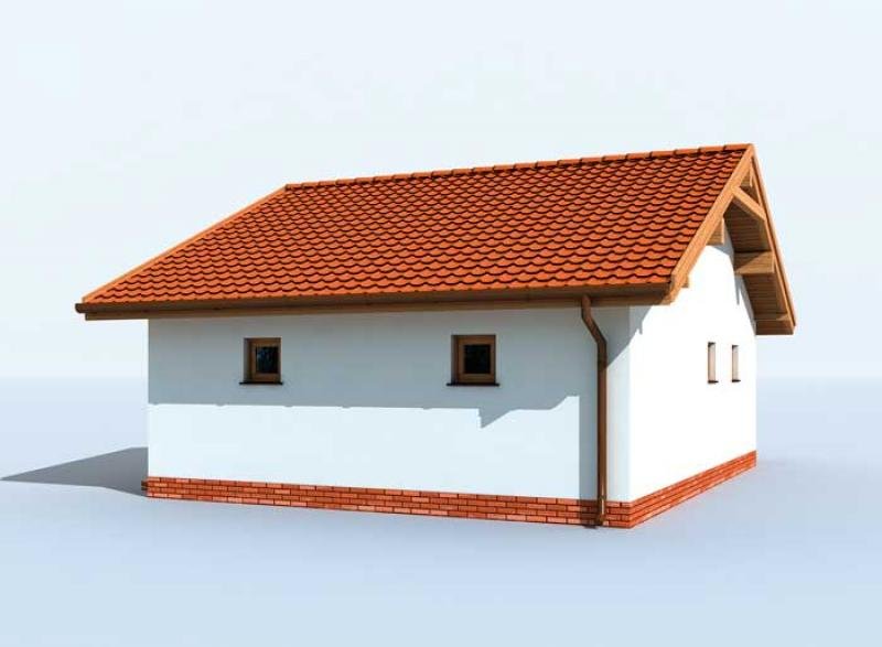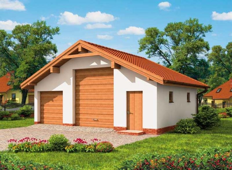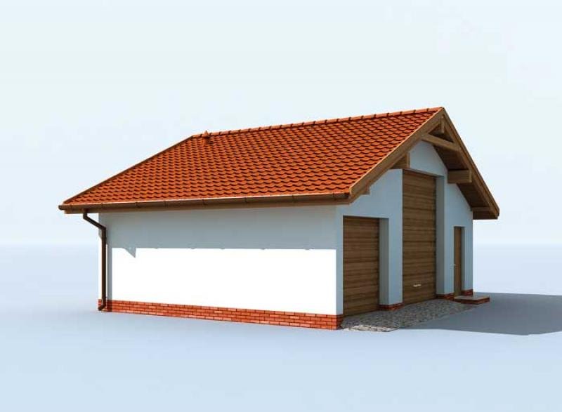 Projekt garażu dwustanowiskowego. Brama garażowa o wymiarach 2400x2200 i 3000x3500 Projekt składa się z części architektonicznej, konstrukcyjnej, wewnętrznych instalacji wod.-kan, c. o. i elektrycznej. W projekcie załączone są podstawowe zestawienie stali, drewna i stolarki okienno-drzwiowej. Do projektu dołączamy bezpłatną zgodę na wprowadzenie zmian, oświadczenie projektantów o wykonaniu projektu zgodnie z obowiązującymi normami i przepisami oraz kserokopie uprawnień projektantów wraz z aktualnym wpisem do izby. W przypadku zamówienia projektu w technologii lekkiej, drewnianej konstrukcji szkieletowej, powierzchnia użytkowa budynku jest o około 7% większa.