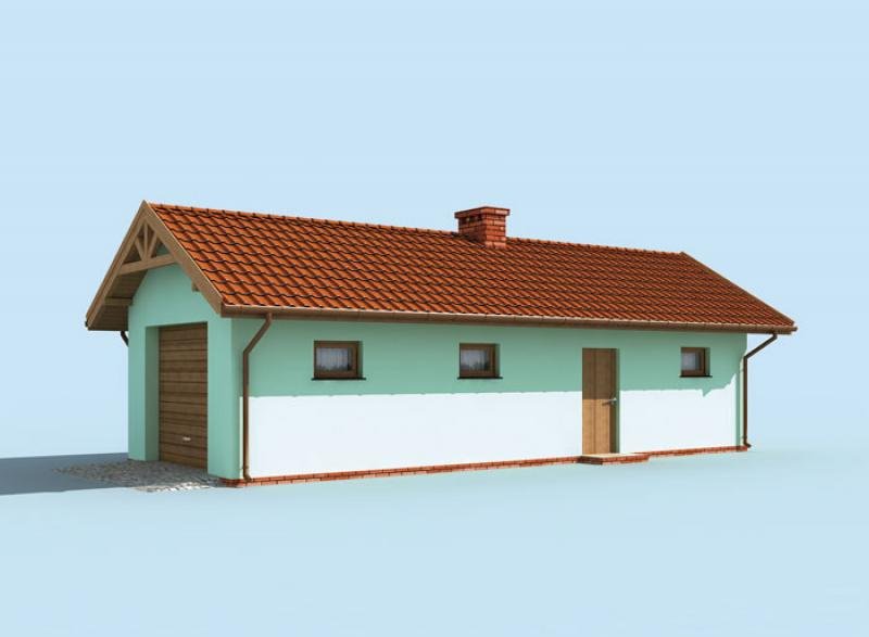 Budynek gospodarczy, wolnostojący. Projekt składa się z części architektonicznej, konstrukcyjnej i wewnętrznej instalacji elektrycznej. W projekcie załączone są podstawowe zestawienie stali, drewna i stolarki okienno-drzwiowej. Do projektu dołączamy bezpłatną zgodę na wprowadzenie zmian, oświadczenie projektantów o wykonaniu projektu zgodnie z obowiązującymi normami i przepisami oraz kserokopie uprawnień projektantów wraz z aktualnym wpisem do izby. W przypadku zamówienia projektu w technologii lekkiej, drewnianej konstrukcji szkieletowej, powierzchnia użytkowa budynku jest o około 7% większa.