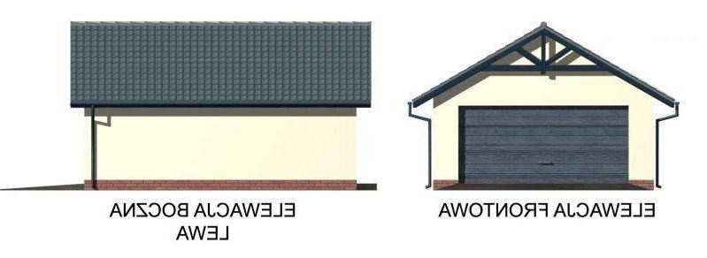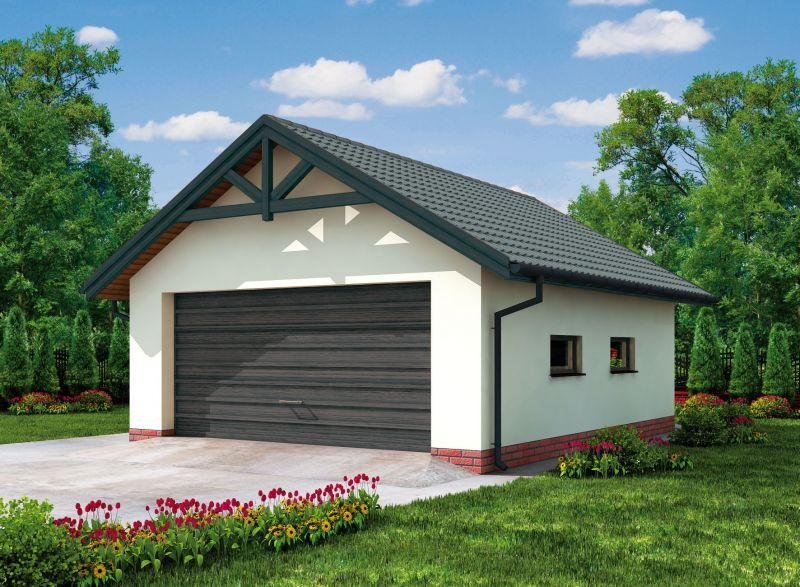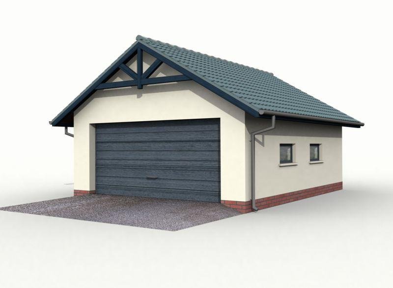 Garaż jednostanowiskowyw technologii szkieletowej, wolnostojący, parterowy.