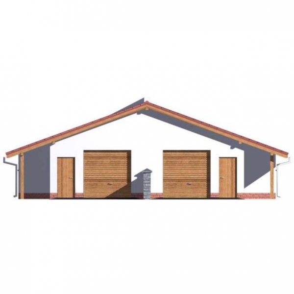 Garaż bliźniaczy z pom. gospodarczym i składem na drewno, wolnostojący, parterowy. Brama garażowa o wymiarach 2400x2400. Garaż posiada dodatkowo pomieszczenie gospodarcze i skład na drewno. Projekt garażu składa się z czterech egzemplarzy a w tym części architektonicznej, konstrukcyjnej i instalacji wewnętrznej elektrycznej. W projekcie załączone są podstawowe zestawienie stali, drewna i stolarki okienno-drzwiowej. Do projektu dołączamy bezpłatną zgodę na wprowadzenie zmian, oświadczenie projektantów o wykonaniu projektu zgodnie z obowiązującymi normami i przepisami oraz kserokopie uprawnień projektantów wraz z aktualnym wpisem do izby.
